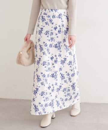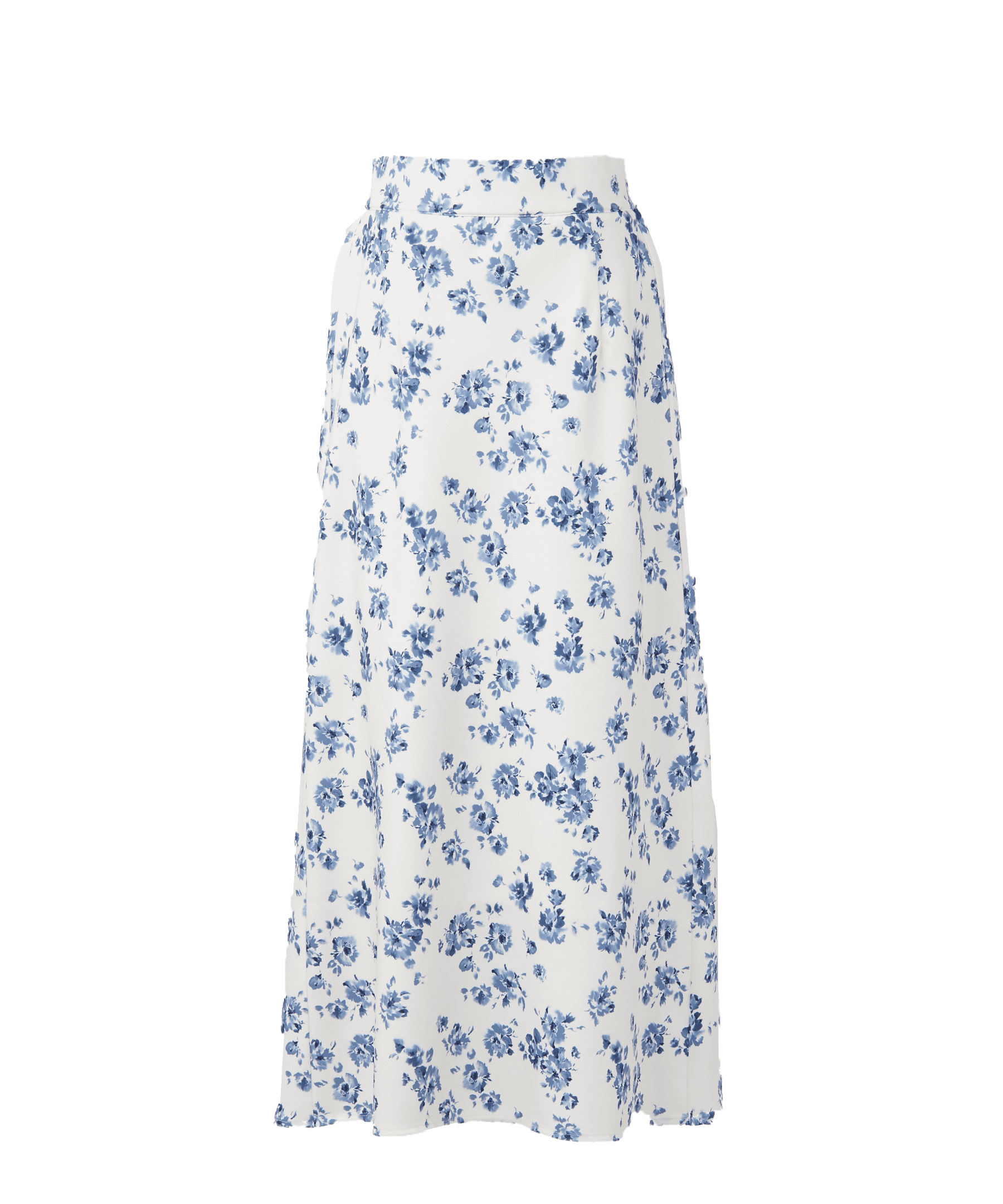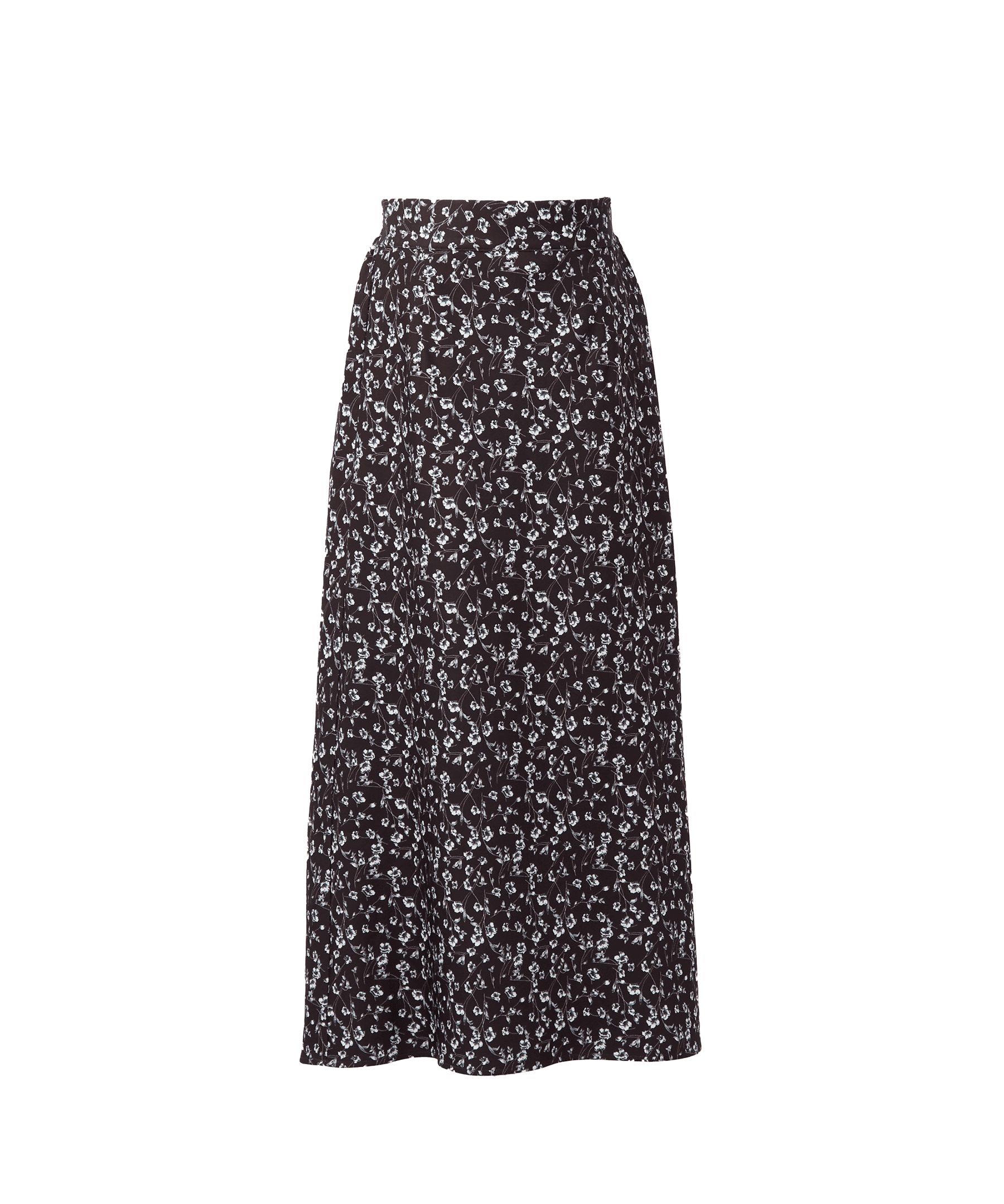 繊細なタッチで描かれたオリジナルの花柄は。可憐でありながらも甘すぎない、大人の女性にぴったりのデザイン。スカート全体に広がる花柄は、まるで水彩画のような柔らかな雰囲気。約5㎝折り返しが可能なので、低身長の方はもちろん、その日の気分にって丈感を変えて着用いただけます。