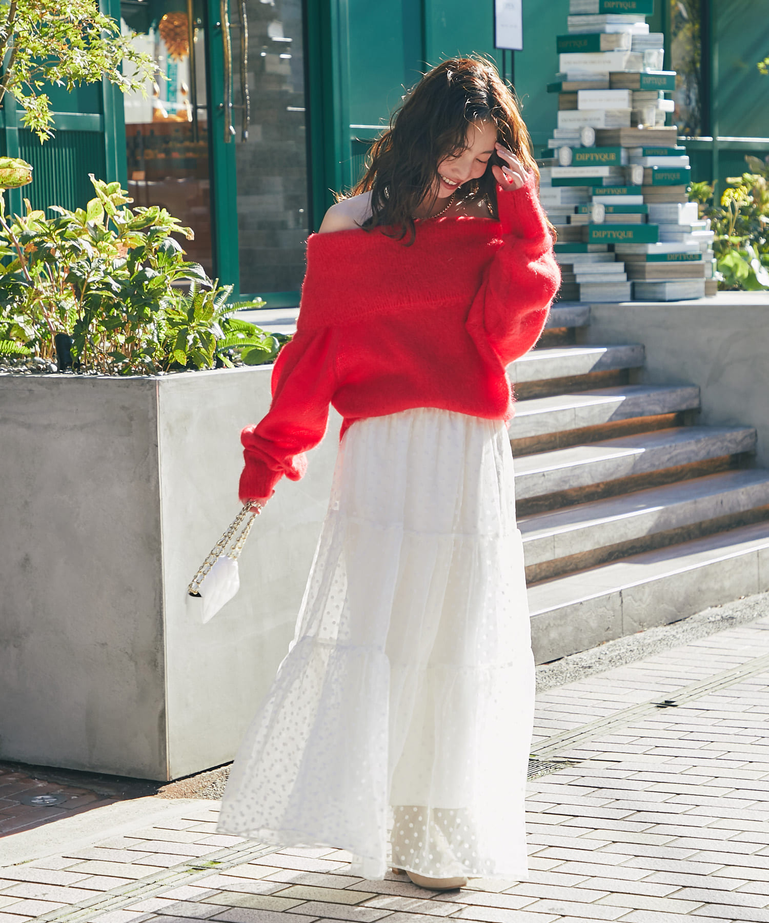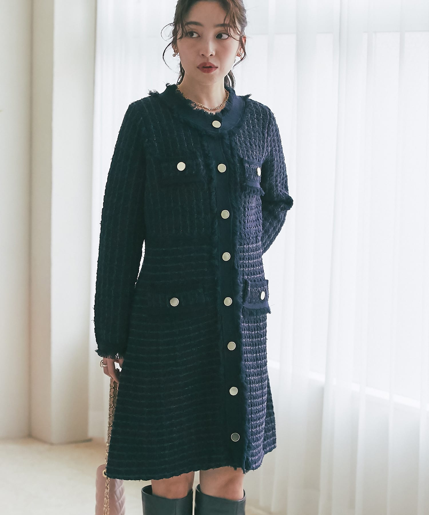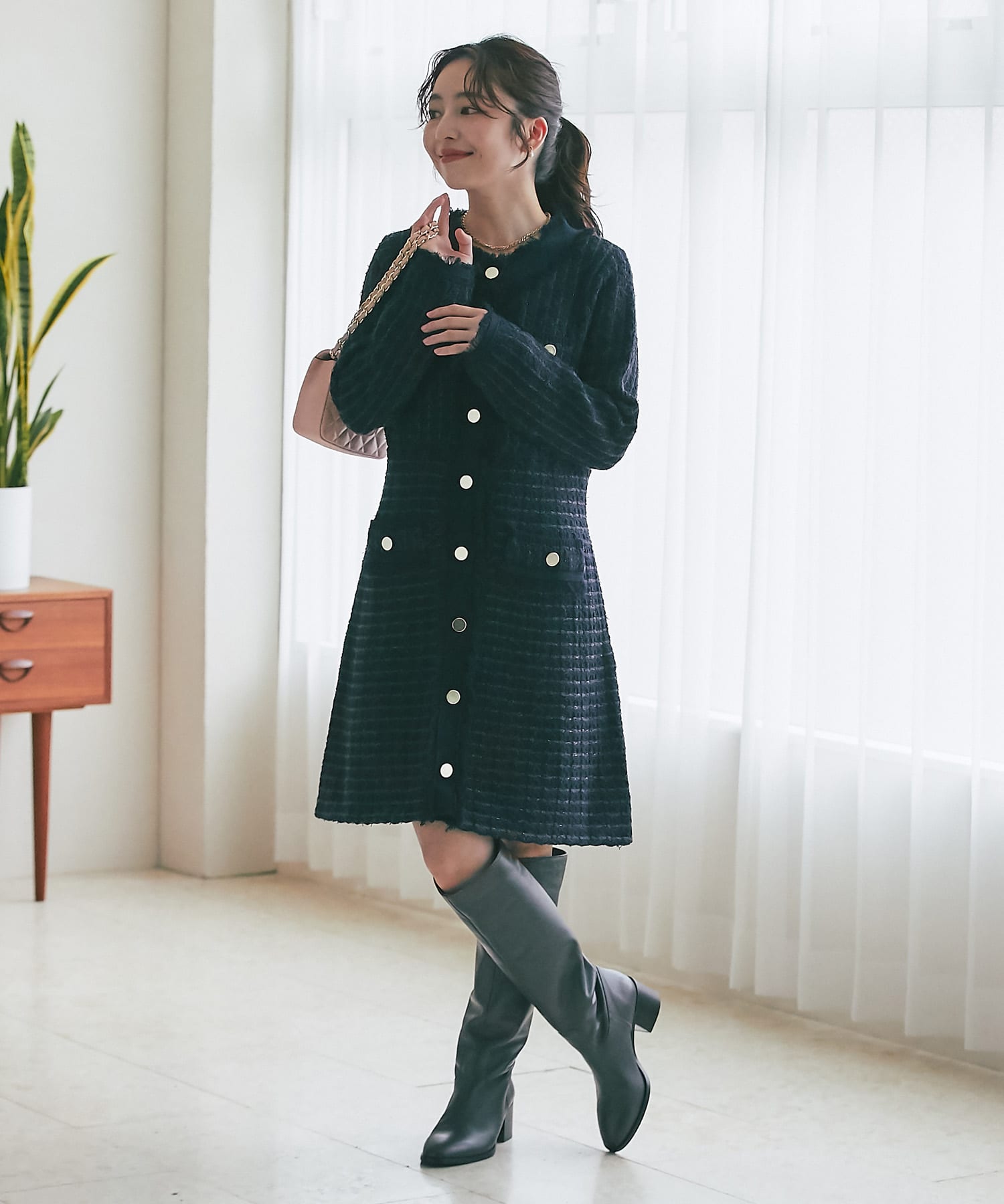 一枚で着映えるので、ホリデーシーズンのお出かけにもおすすめ。