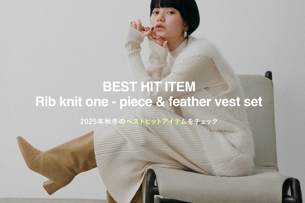 【BEST HIT】選べるリブニットワンピース×フェザーベストセット