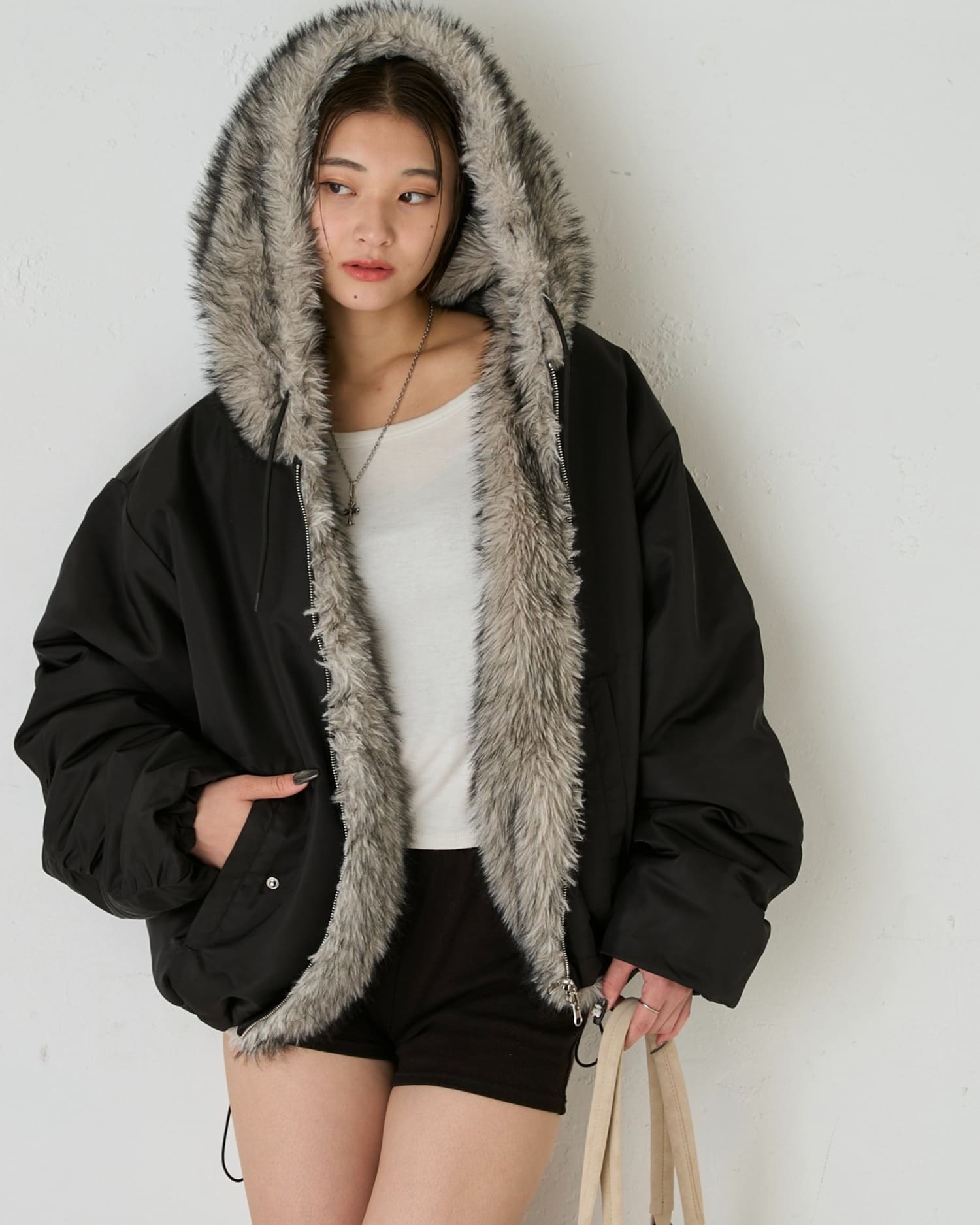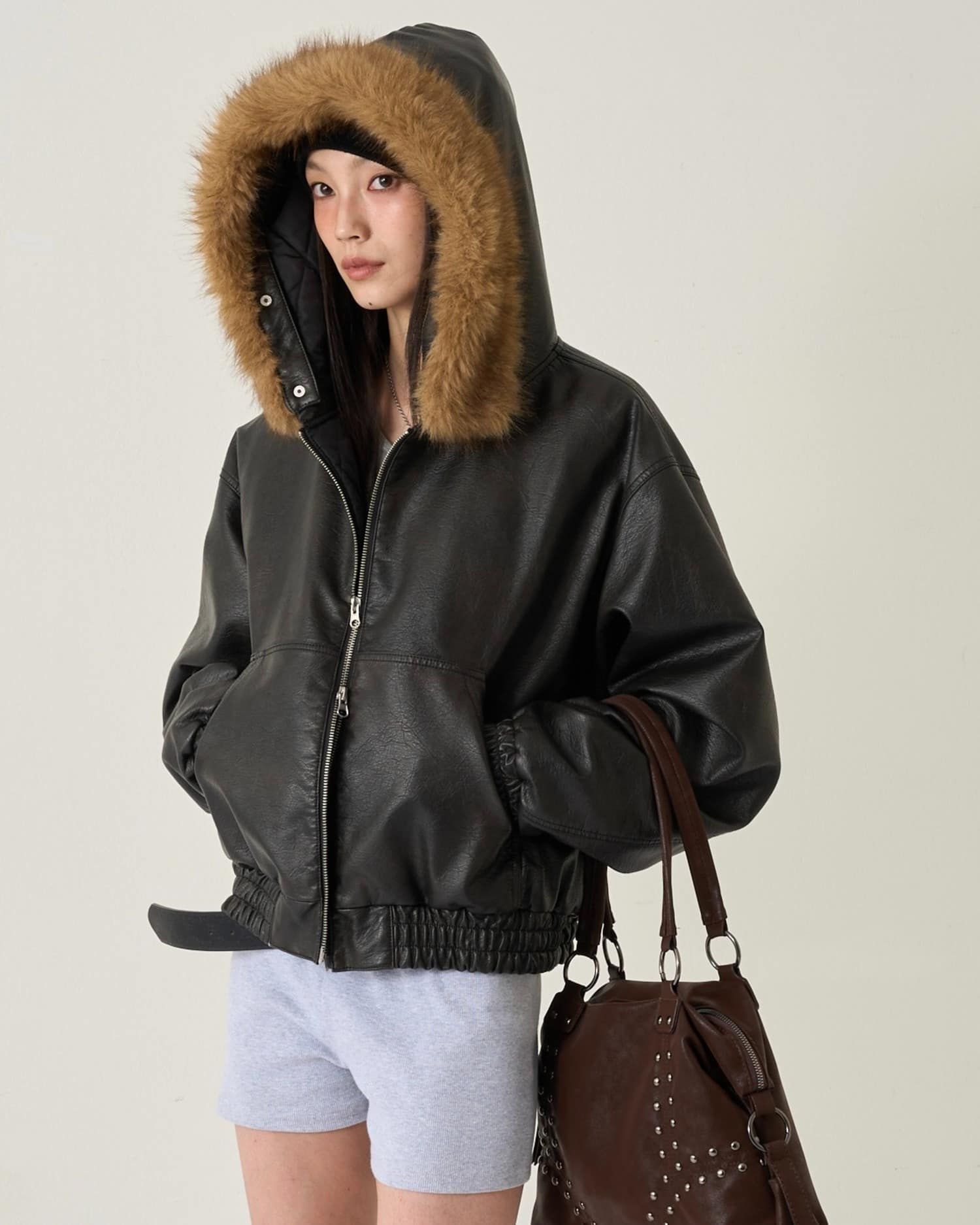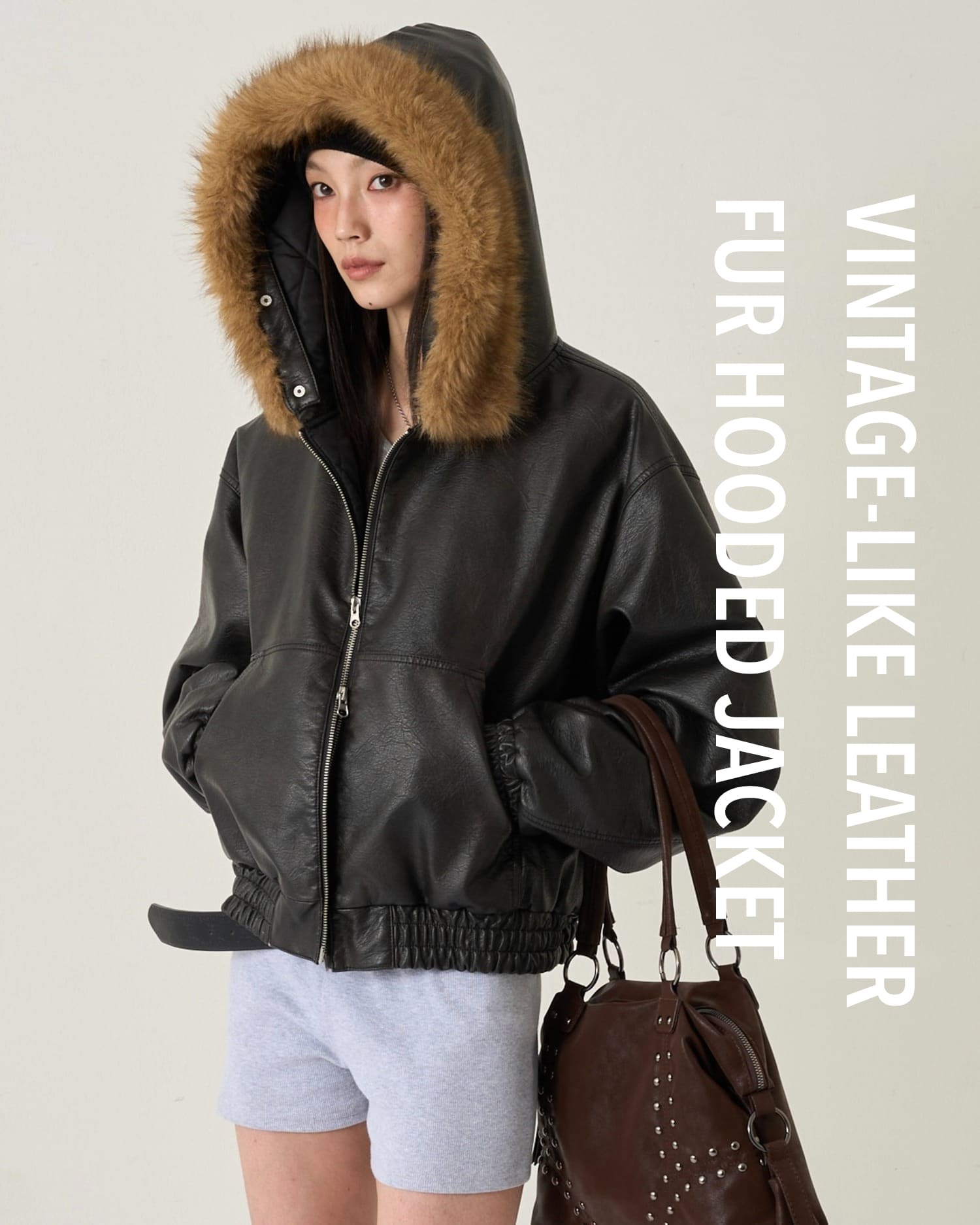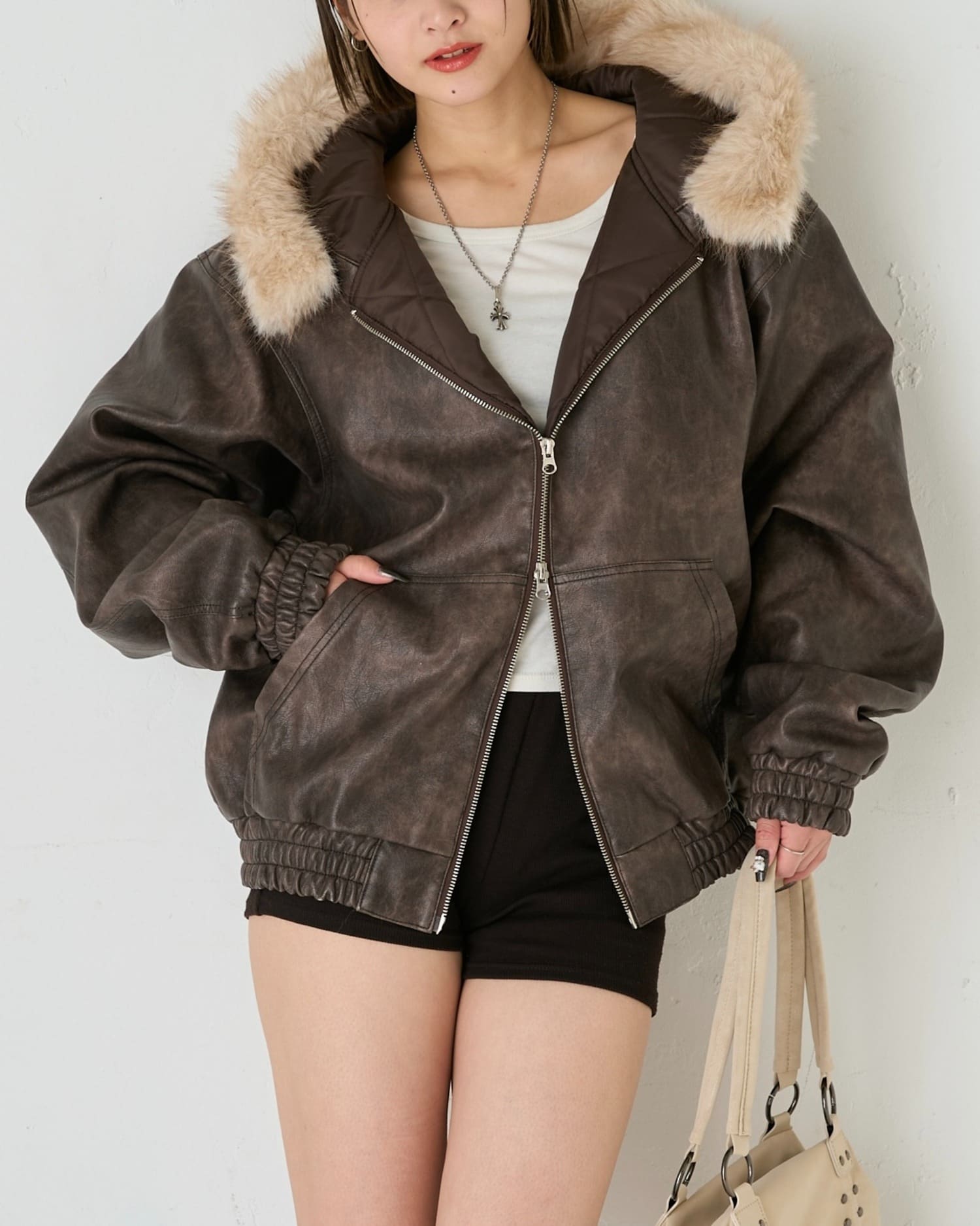 保温性も抜群のアウター☆ ヴィンテージライクレザーファーフードブルゾン