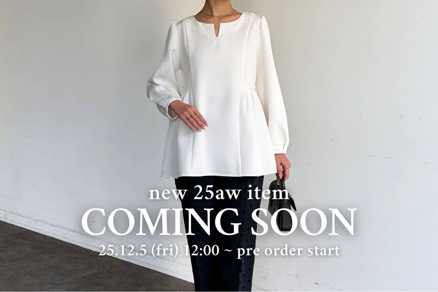 2025.12.03 NEW Chez toi(シェトワ) 【 COMING SOON 】新作アイテムをご紹介♪ COMING SOON 12/5 12:00~ 新作AWアイテムの予約がスタートします! ぜひお買い物の参考にご覧くださいませ。 気になるアイテムはお気に入り登録をしておくとお買い物もスムーズです♪ PRE ORDER LINEUP ロゴスウェット≫more 【セレモニー対応可】ペプラムブラウス≫more 【セレモニー対応可】袖フレアツイードジャケット≫more タックペプラムダンボールベスト≫more ボウタイブラウス≫more 裾ラウンドブラウス≫more 【新色登場!】ペプラムベスト×ニットプルオーバー≫more 予約商品一覧はこちら 2025.12.02 NEW Chez toi 【12/3 18:00 up】Ceremony Style 2025.11.28 Chez toi 異素材ドッキングハーフジップワンピースを徹底解説! 2025.11.27 Chez toi 新作アイテムの着回しをご紹介♪ 2025.11.26 Chez toi 【 RESTOCK 】 人気アイテムの再販予約がスタート! 2025.11.26 Chez toi 【 COMING SOON 】新作アイテムをご紹介♪ 2025.11.20 Chez toi 【 RESTOCK 】 人気アイテムの再販予約がスタート! 2025.11.19 Chez toi 【 COMING SOON 】新作アイテムをご紹介♪ 2025.11.14 Chez toi 大人気アイテムの新色をご紹介♪ ニュース一覧へ > < ニュース一覧へ >