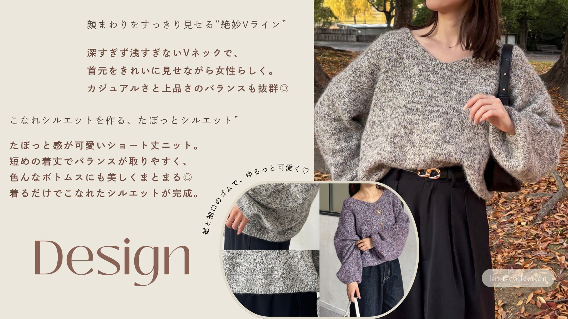 表情豊かなMIX編みのVネックショートニットがこの冬新登場!