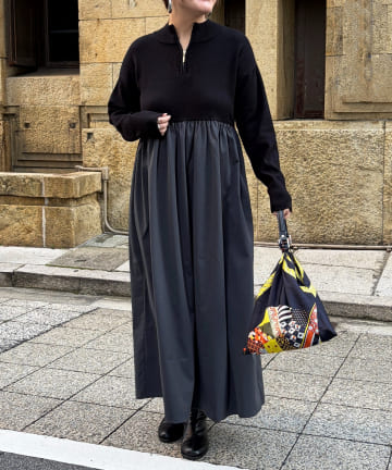 ONE-PIECE:異素材ドッキングハーフジップワンピースBUY