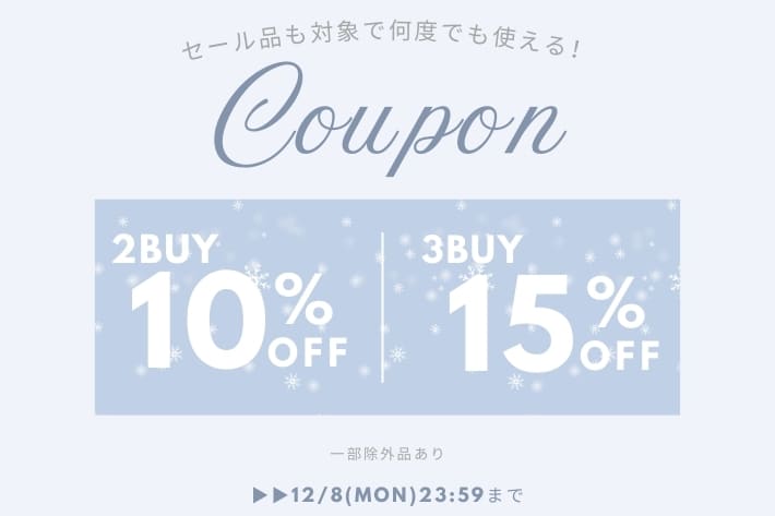 【まとめ買いがオトク!】2buy10%,3buy15%OFFクーポンキャンペーン
