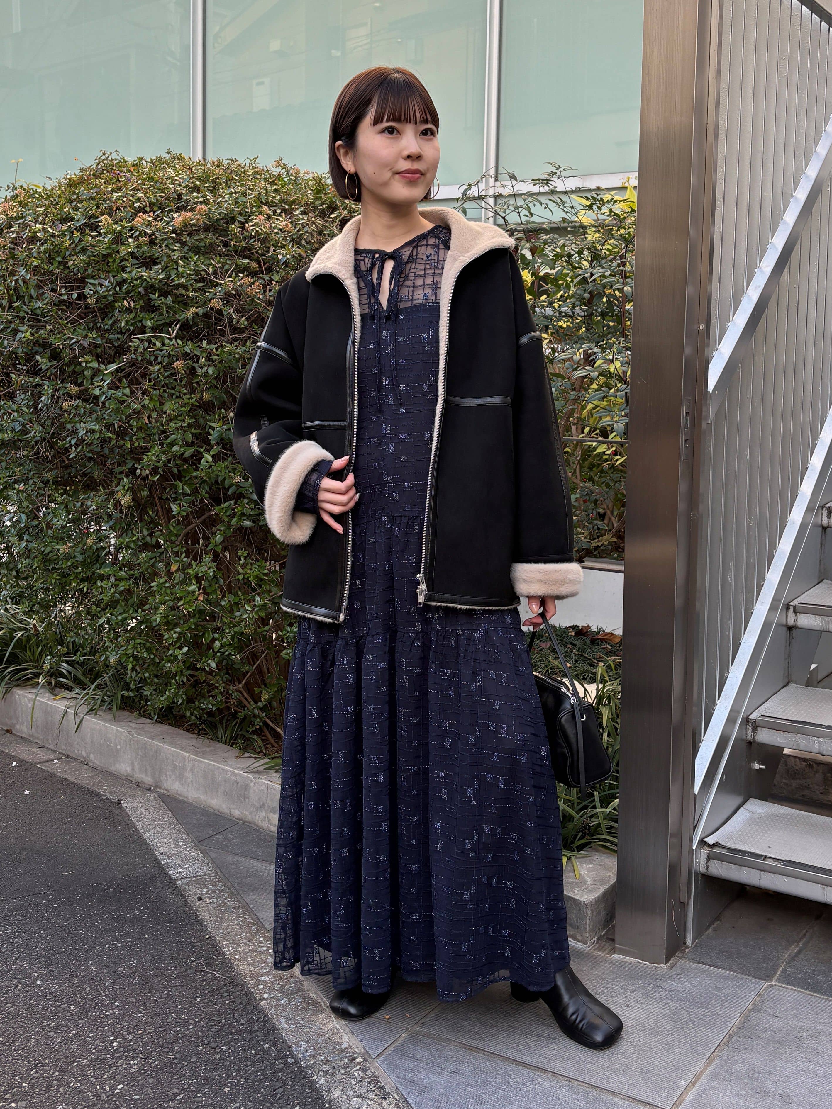 長すぎないコートの丈感が、ワンピースとの相性良く着ていただけます◎