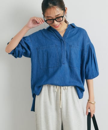 抜け感のあるVネックがスッキリ見えを叶えるニットです♪