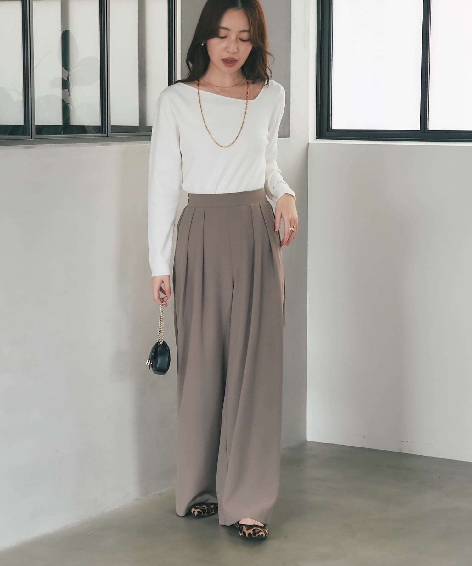 ・生地の落ち感ととろみ感が女性らしい柔らかなタックパンツです。
