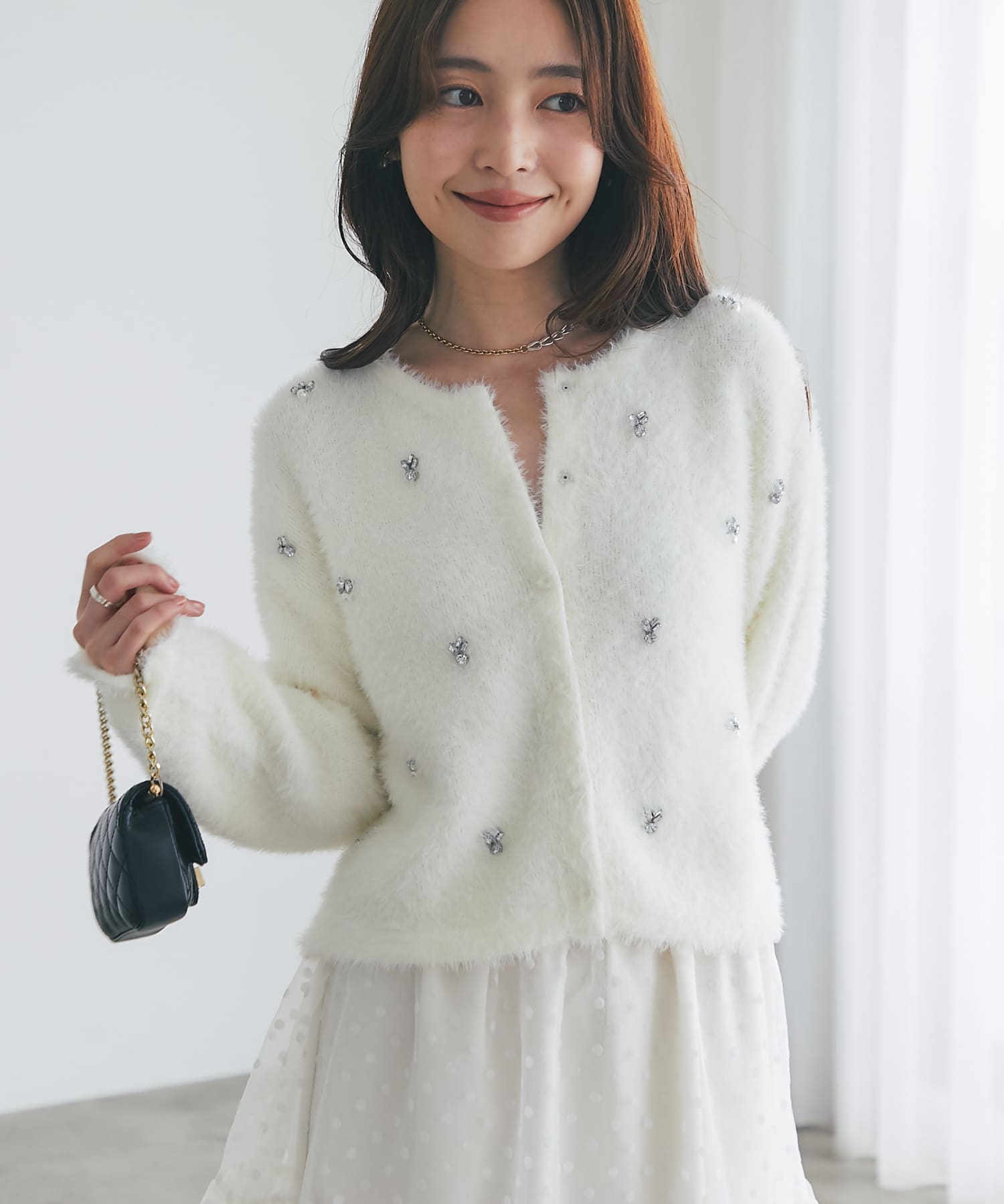 フェザーヤーンビジュー刺繍ジャケットカーディガン ¥15,950(税込)