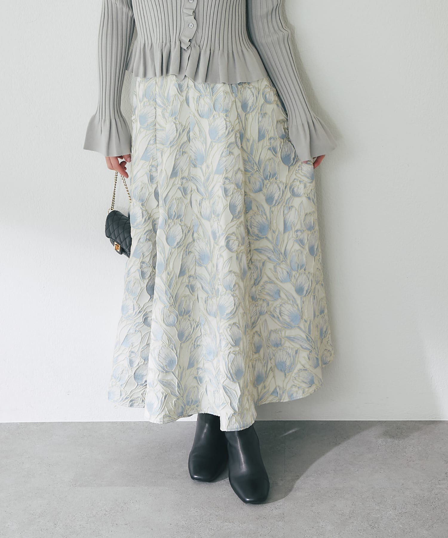 ・上品なフラワージャガードで存在感抜群のフレアスカートです。