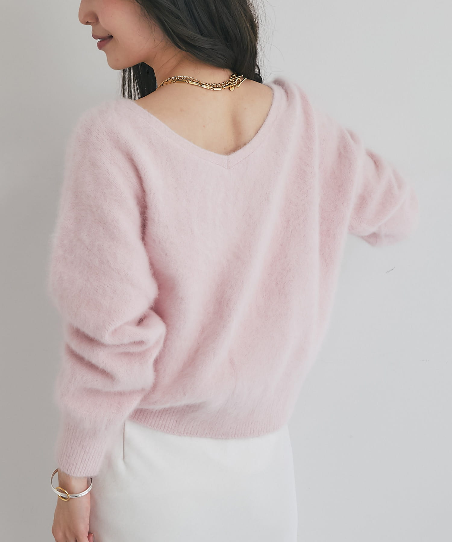 ・ヘアリーなフォックス混カシミヤを使用した上質ニット。
