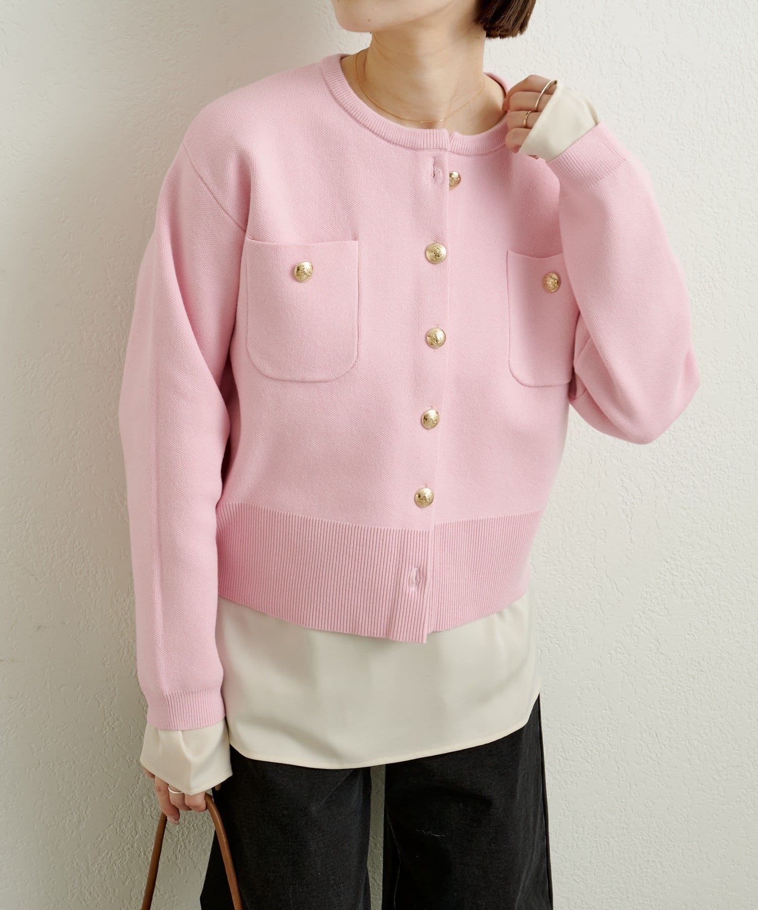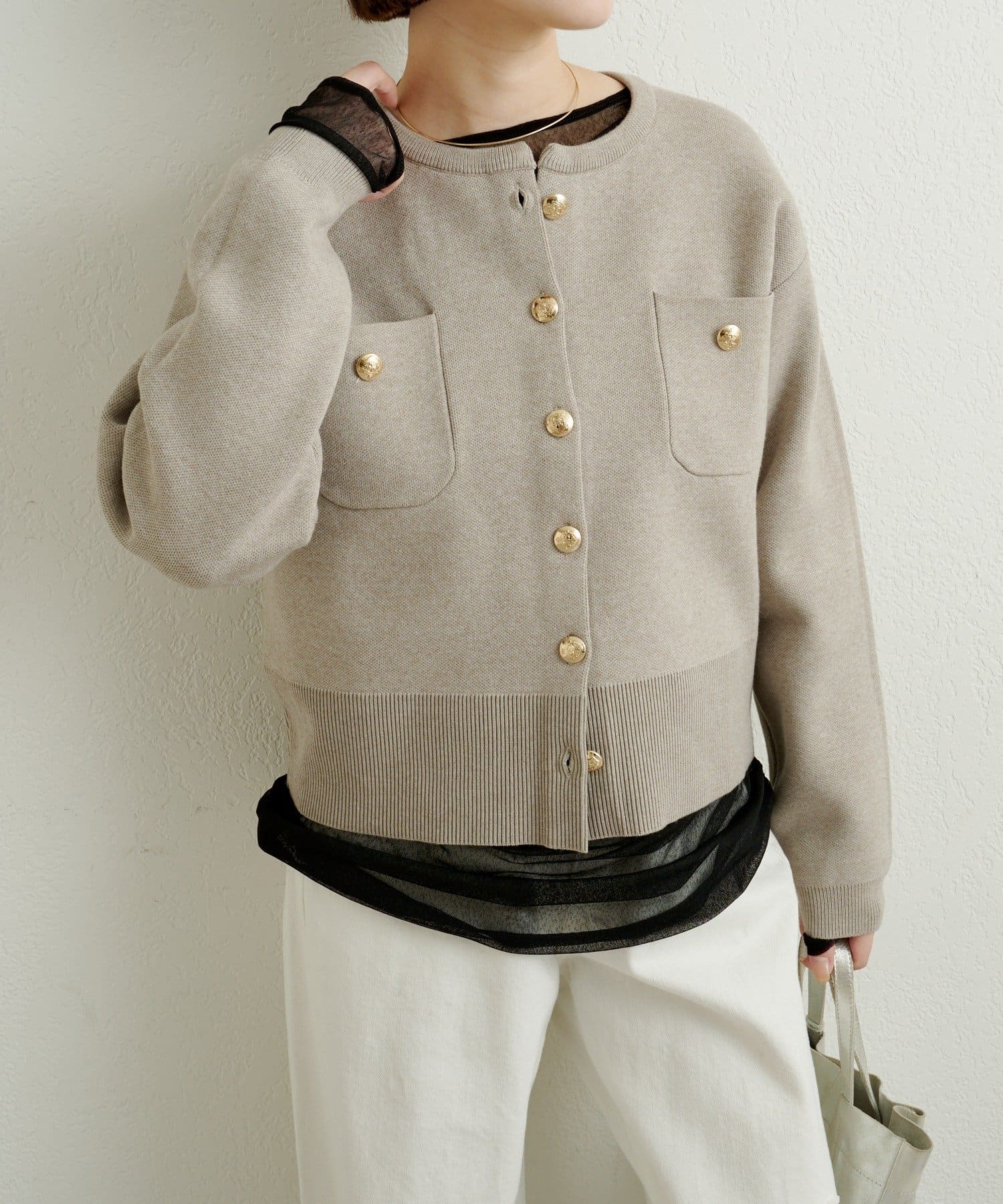 スウェットライクの着心地の良さと金ボタンが大人に、女性らしく着こなせる一枚。
