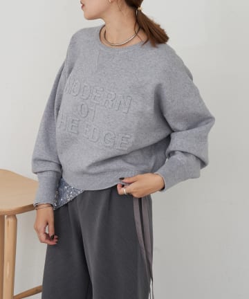フロントに立体的なエンボス加工ロゴを施したトップス。
