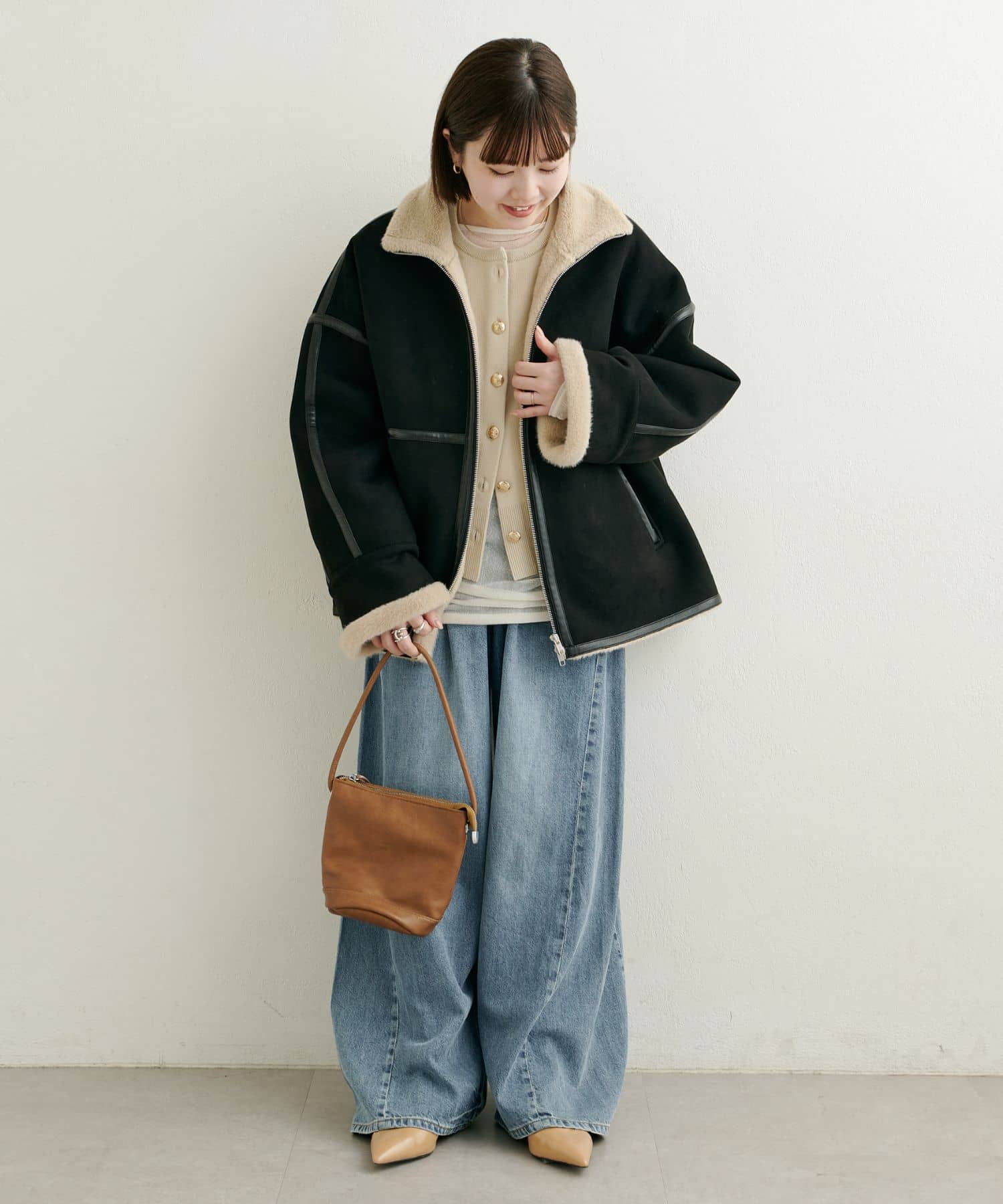 カジュアルなアイテムとも相性抜群のムートンコート。