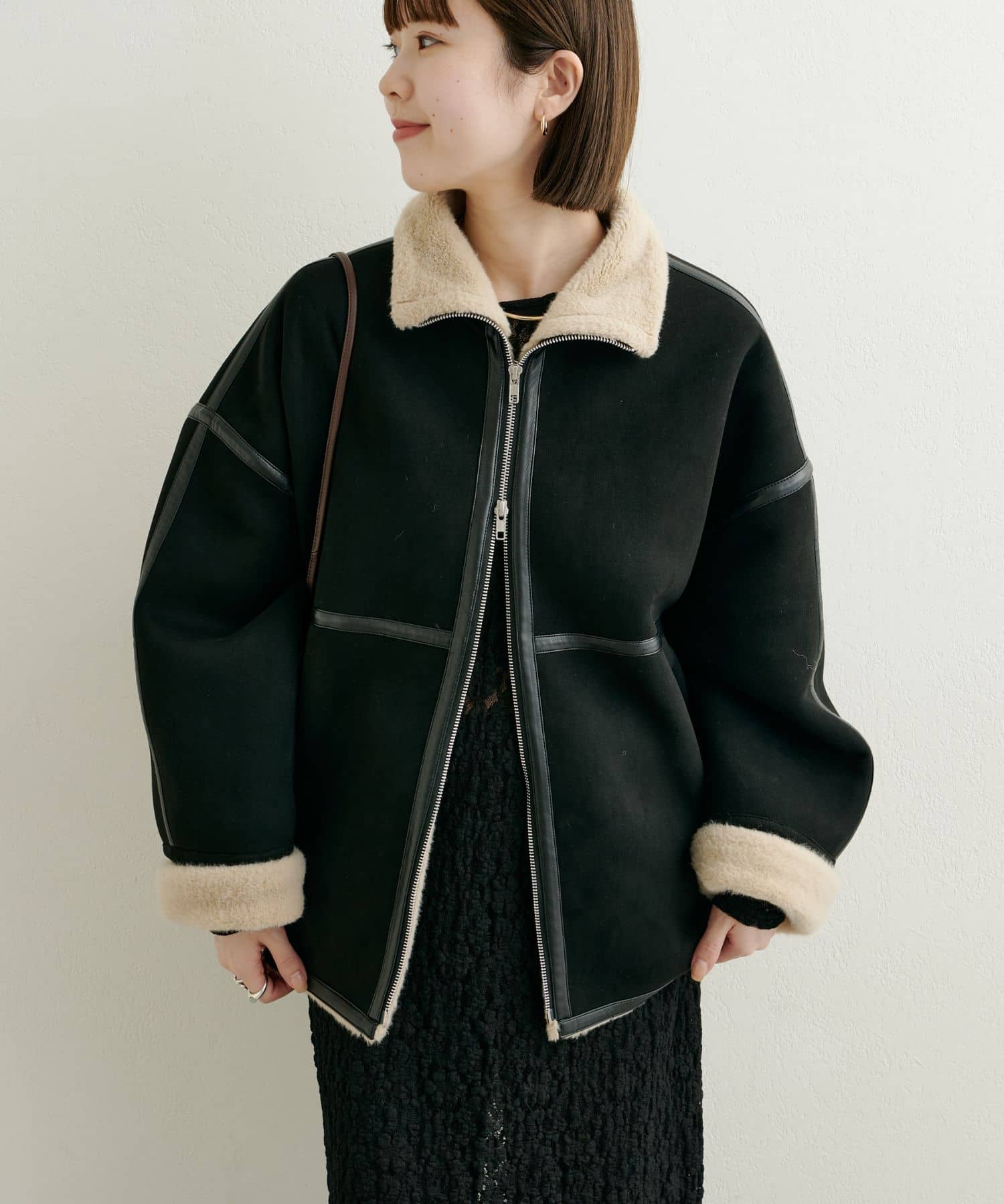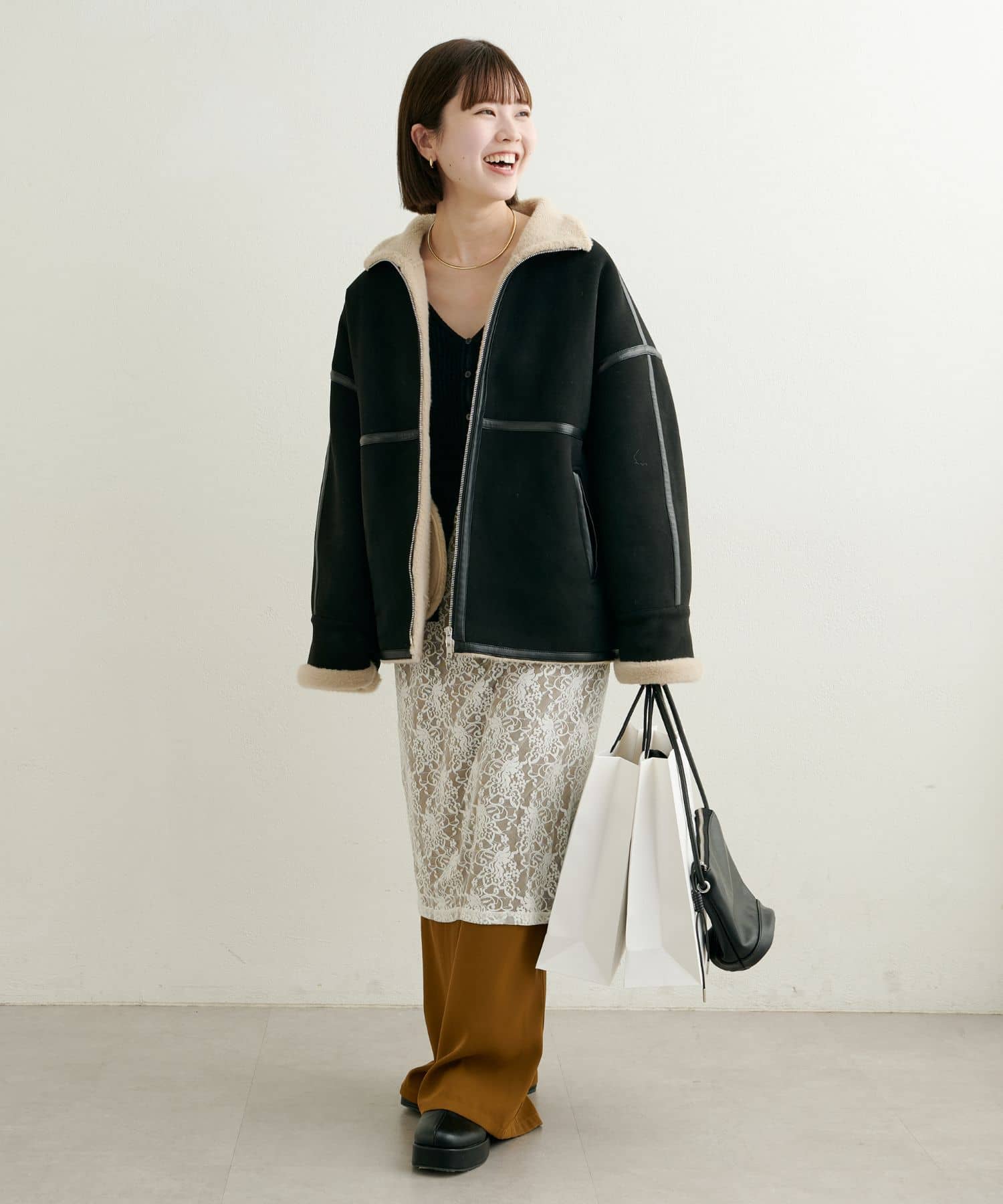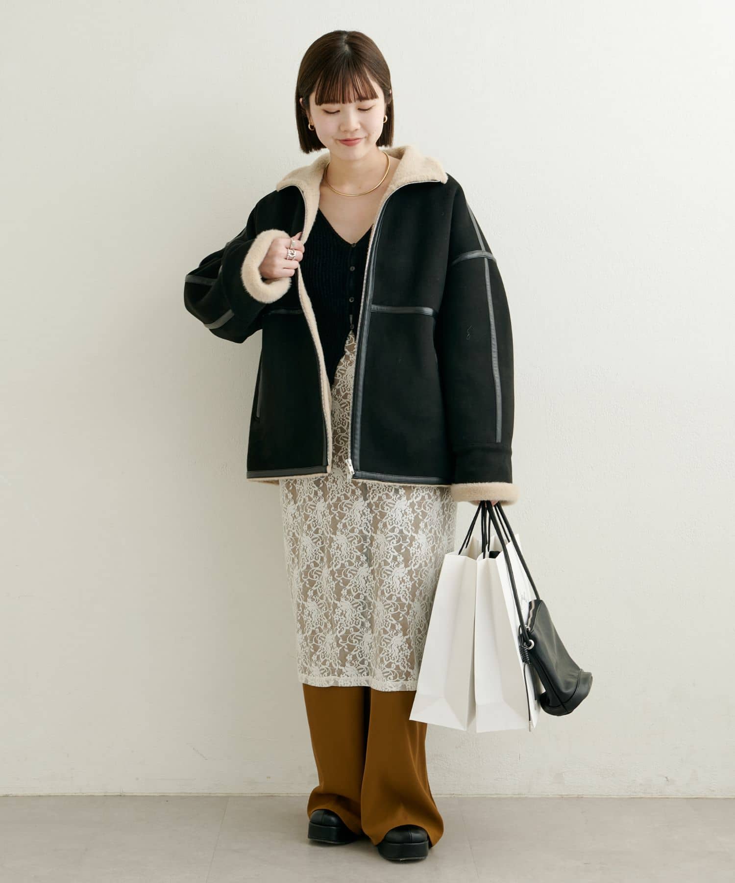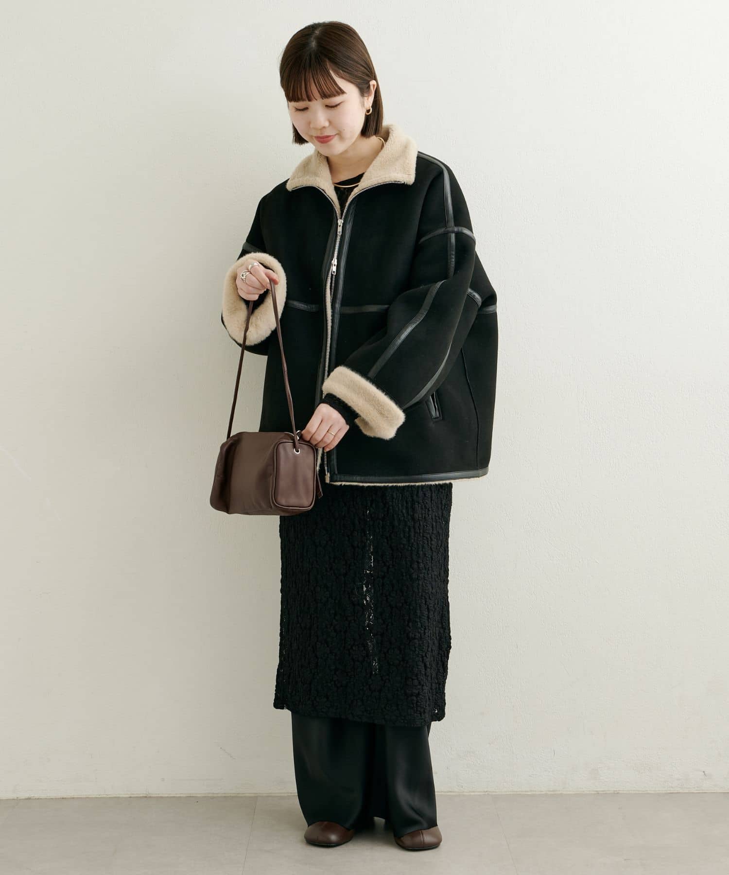 \大人気"フェイクムートンショートコート"の着回し7LOOK!/