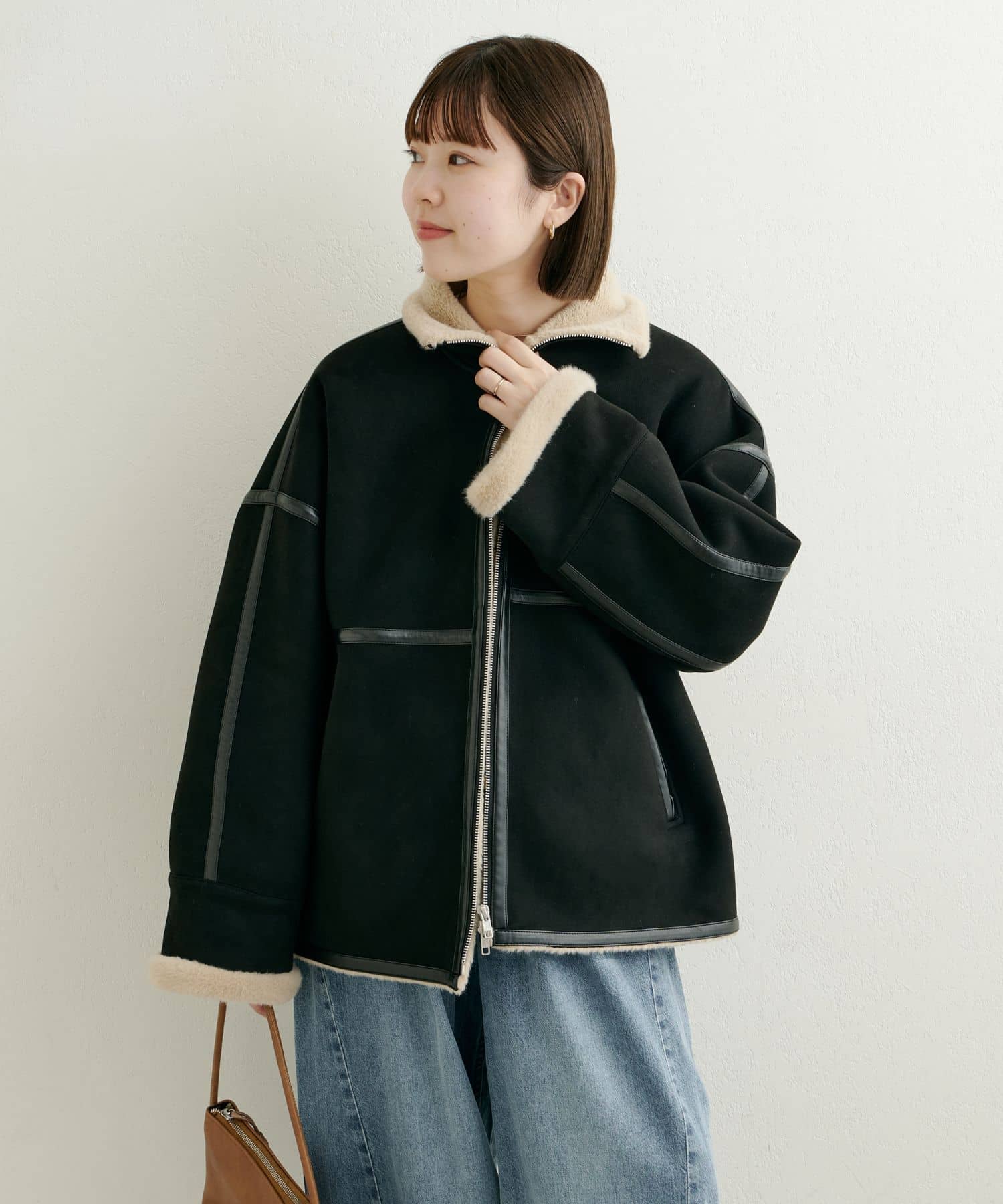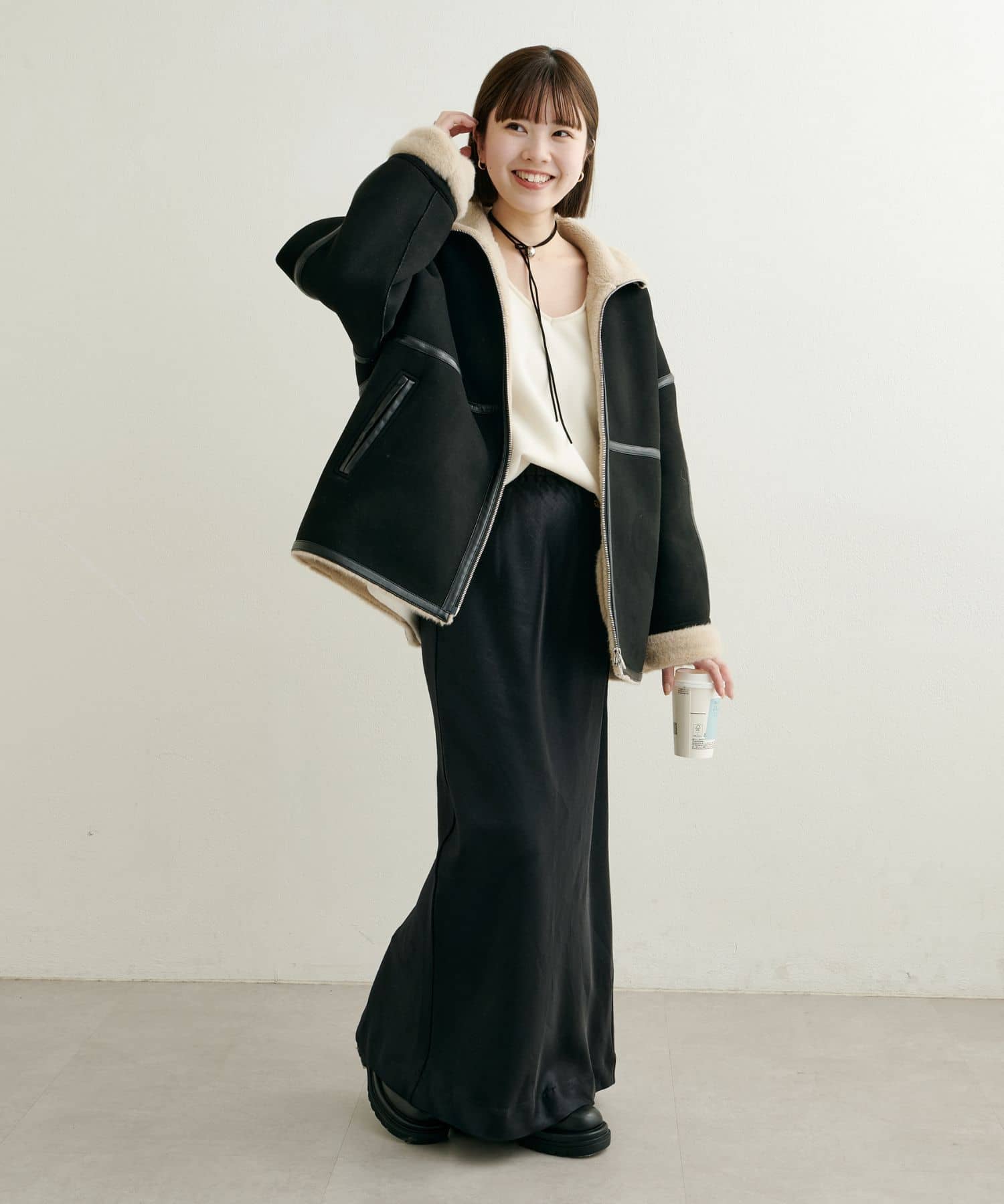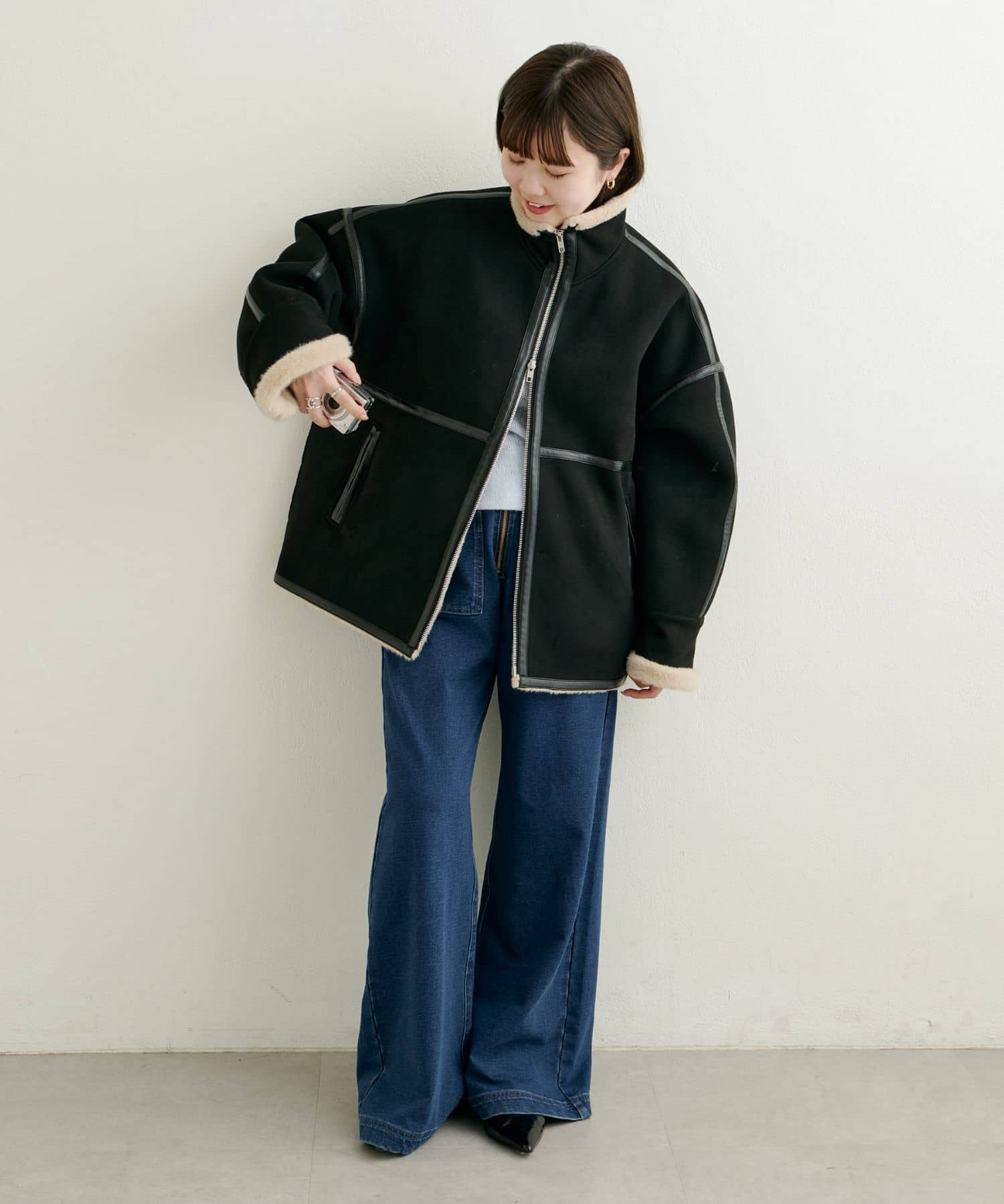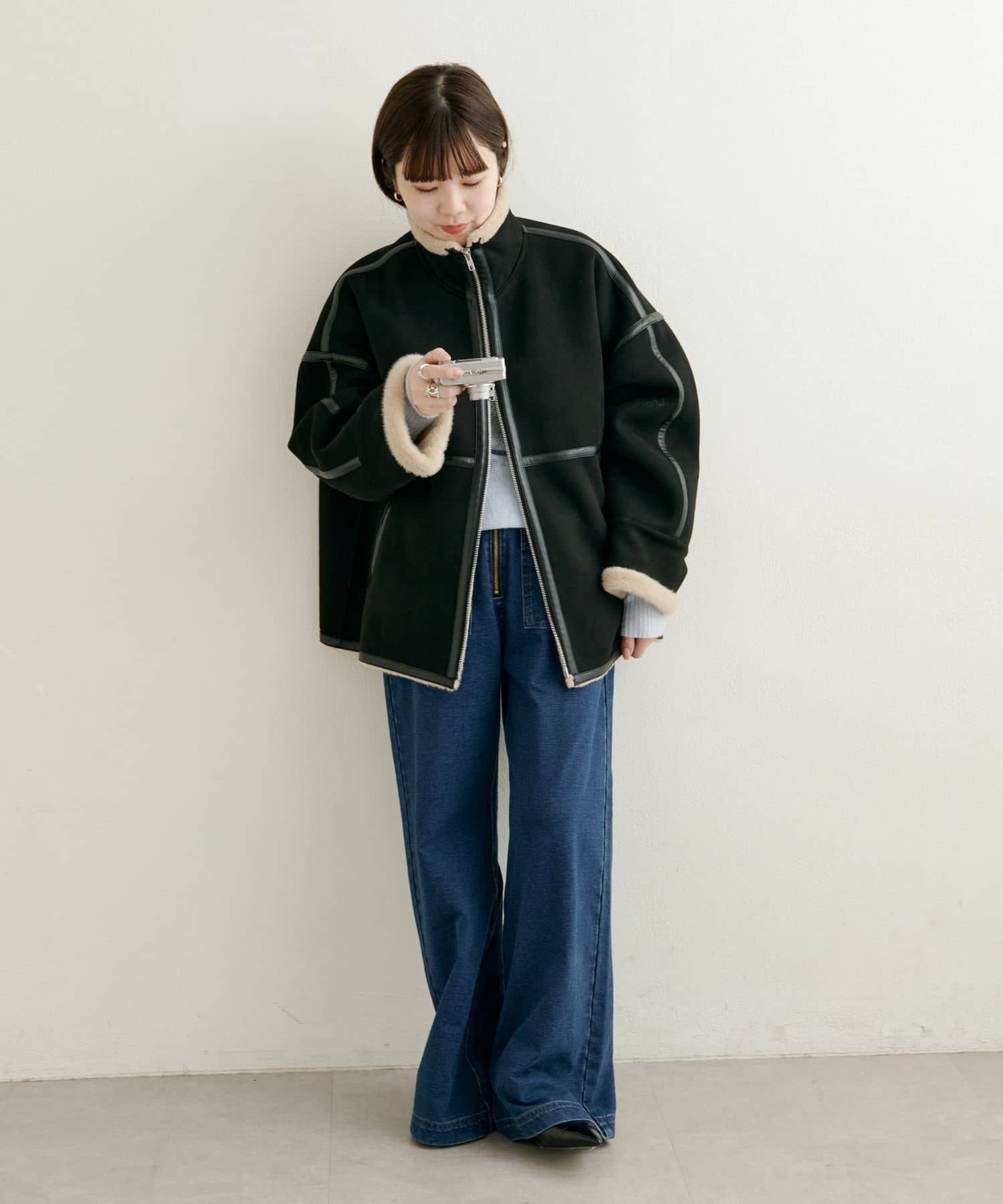 \大人気"フェイクムートンショートコート"の着回し7LOOK!/