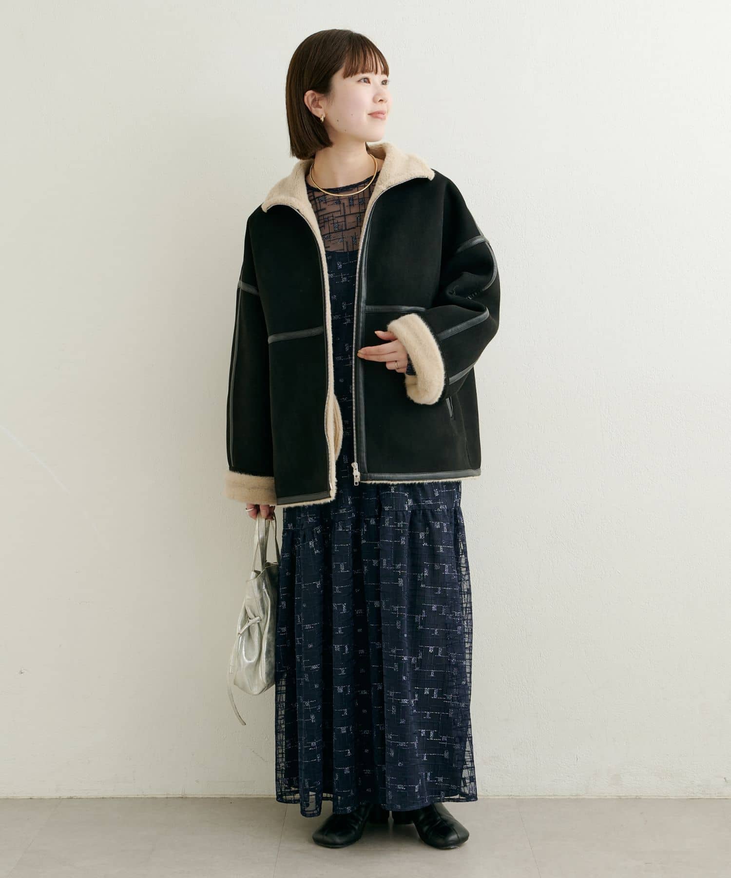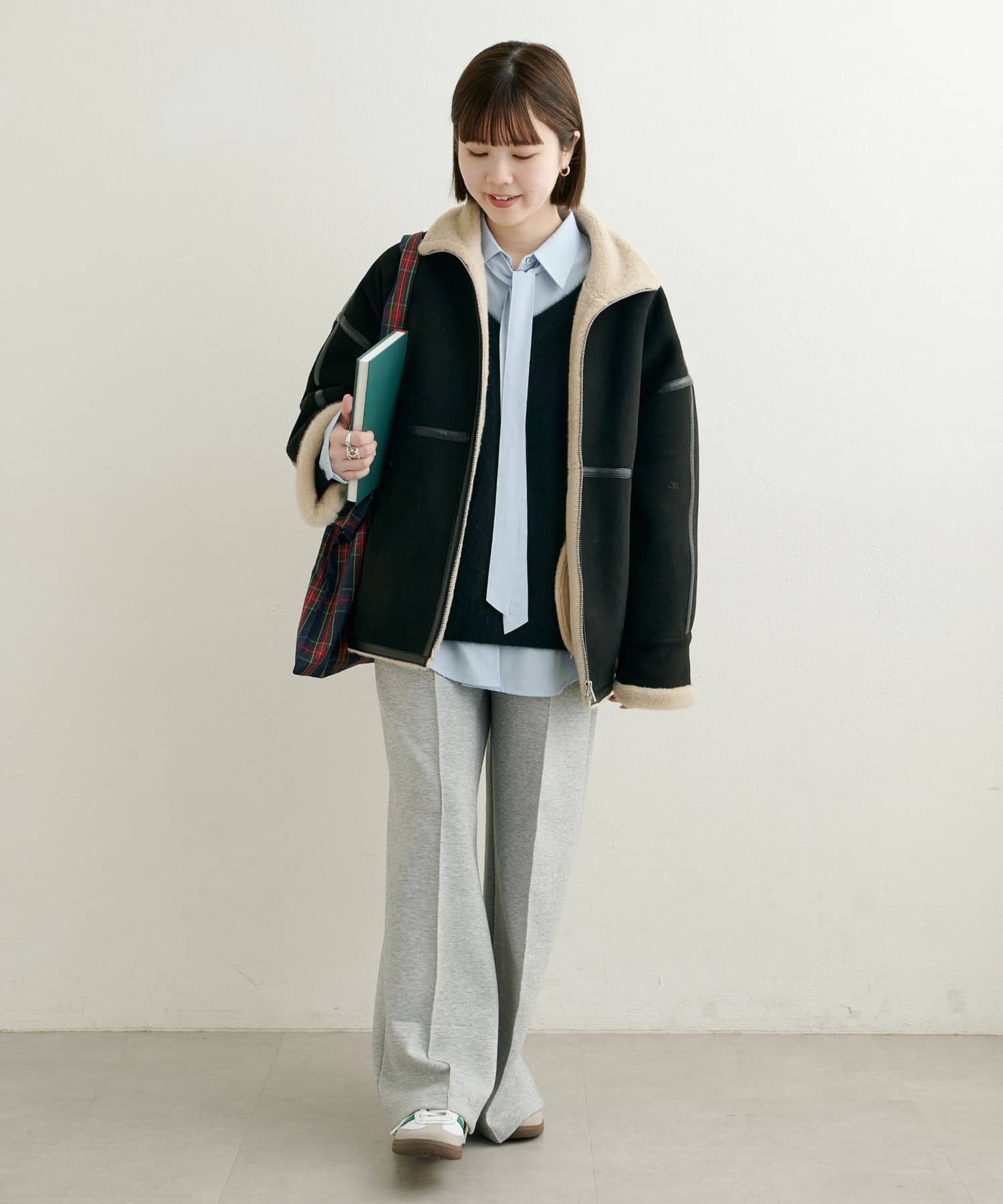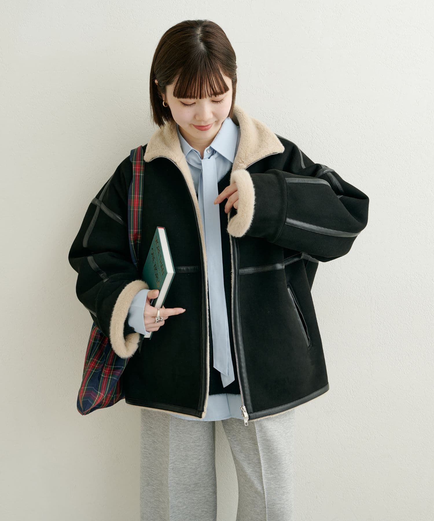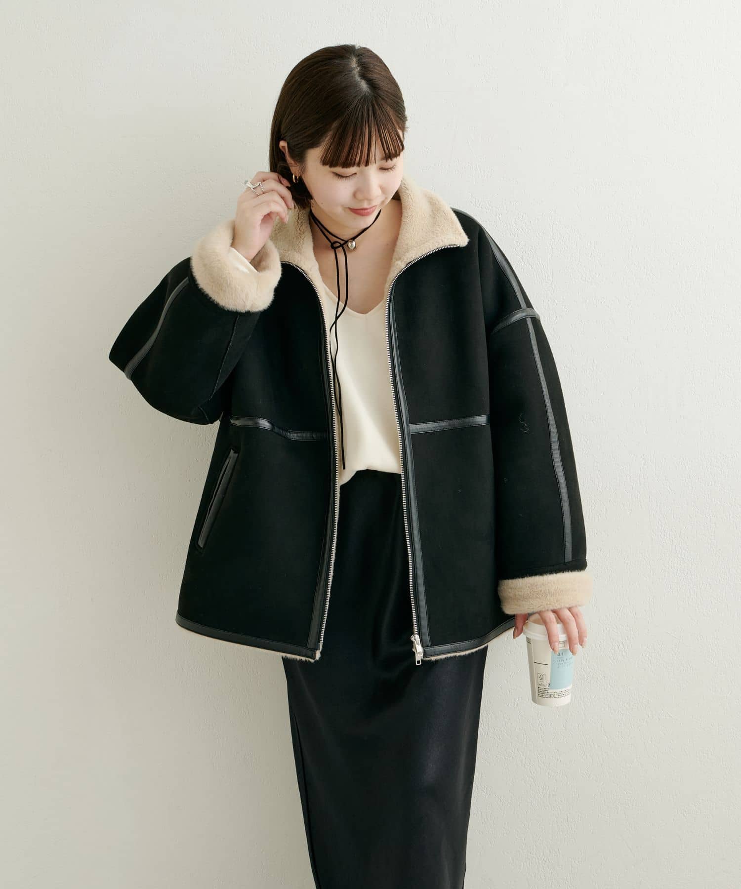 \大人気"フェイクムートンショートコート"の着回し7LOOK!/