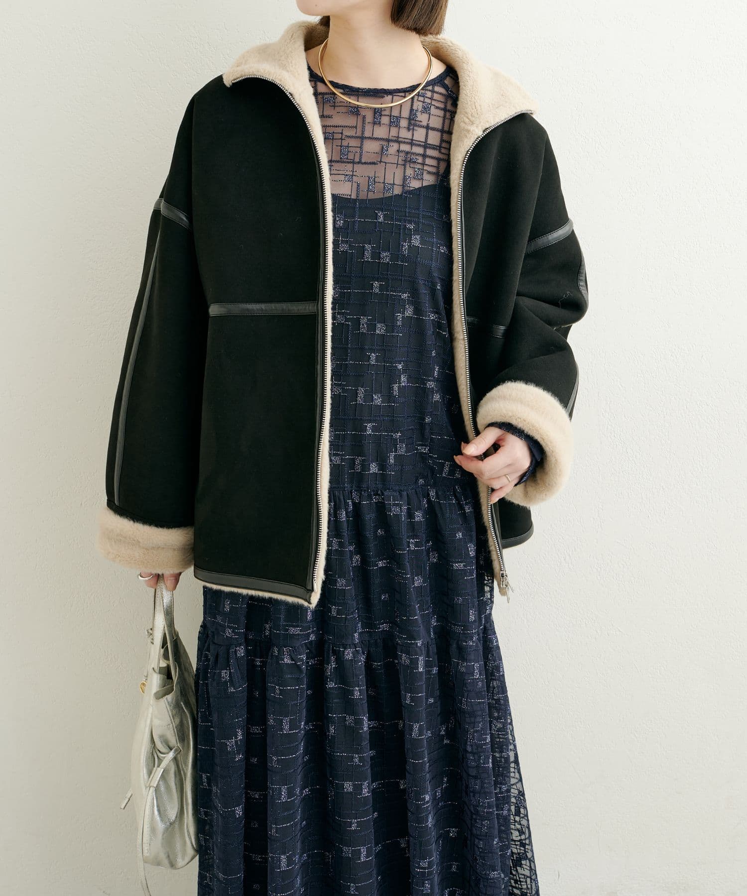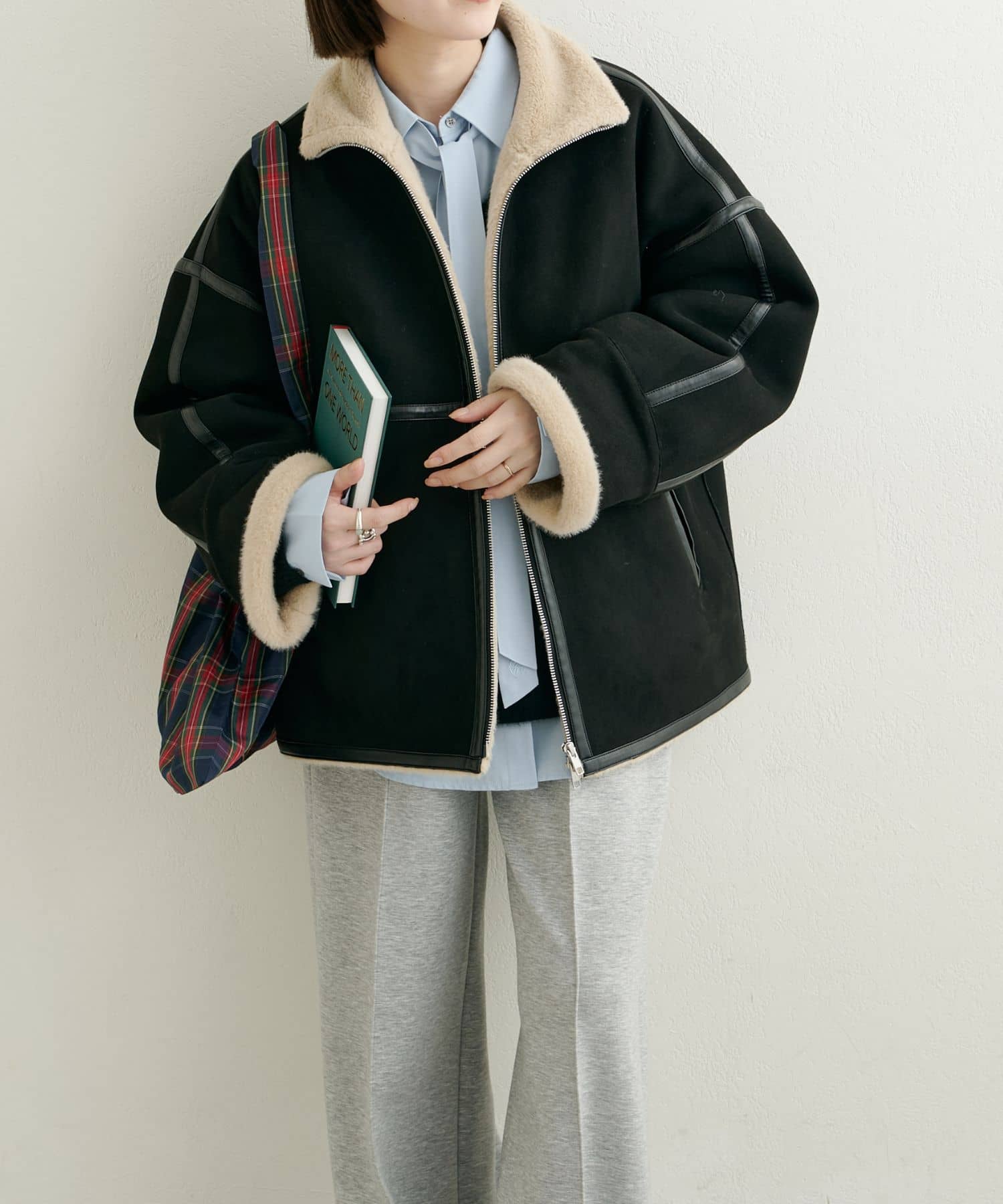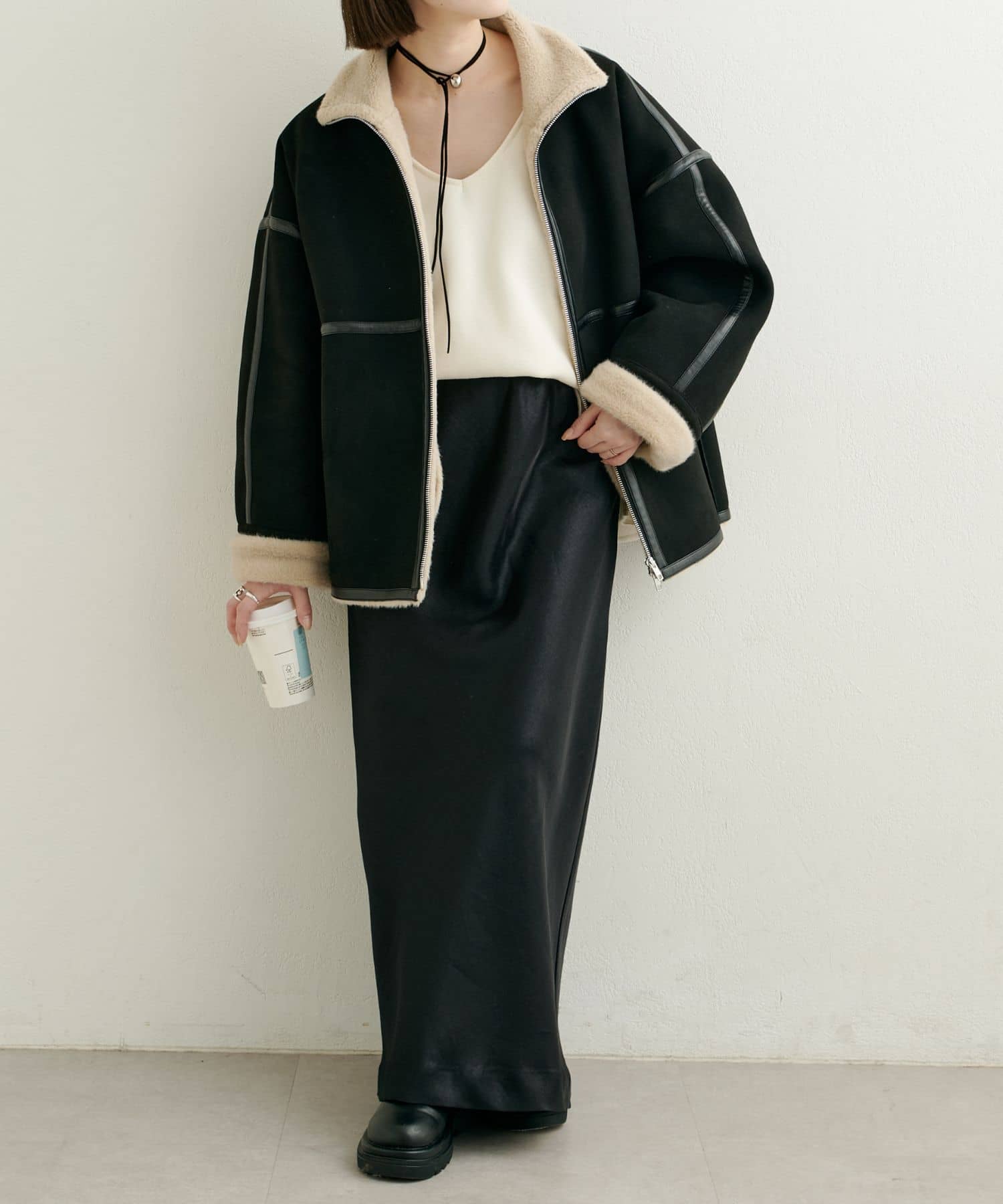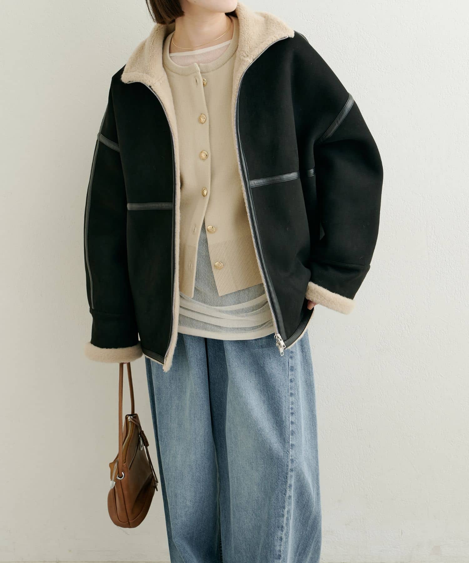 \大人気"フェイクムートンショートコート"の着回し7LOOK!/
