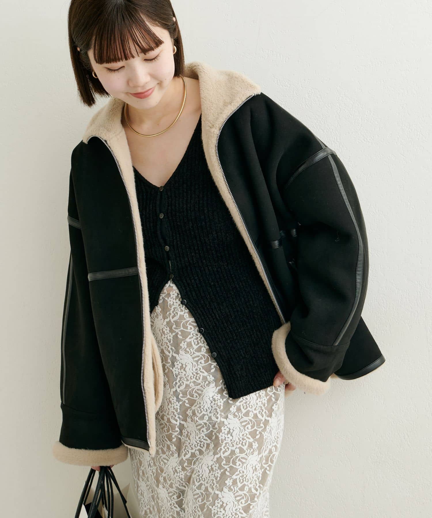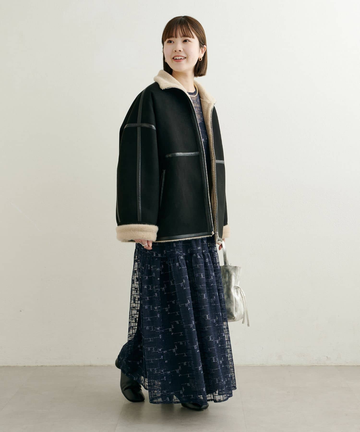 カジュアルなムートンコートも女性らしく着ていただけます。