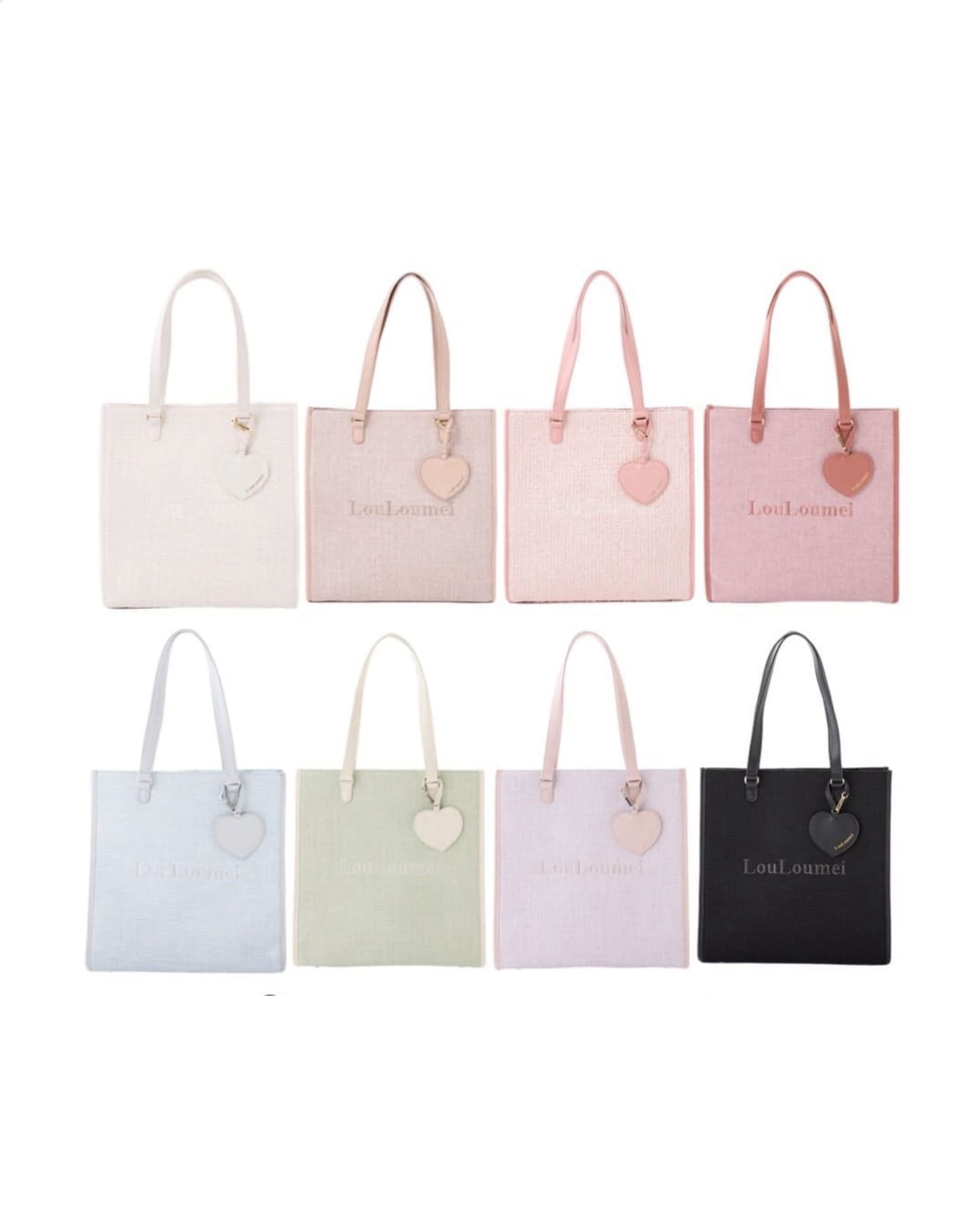 【LouLoumei】8色展開/ハートチャーム付きトートバッグ/自立可能
