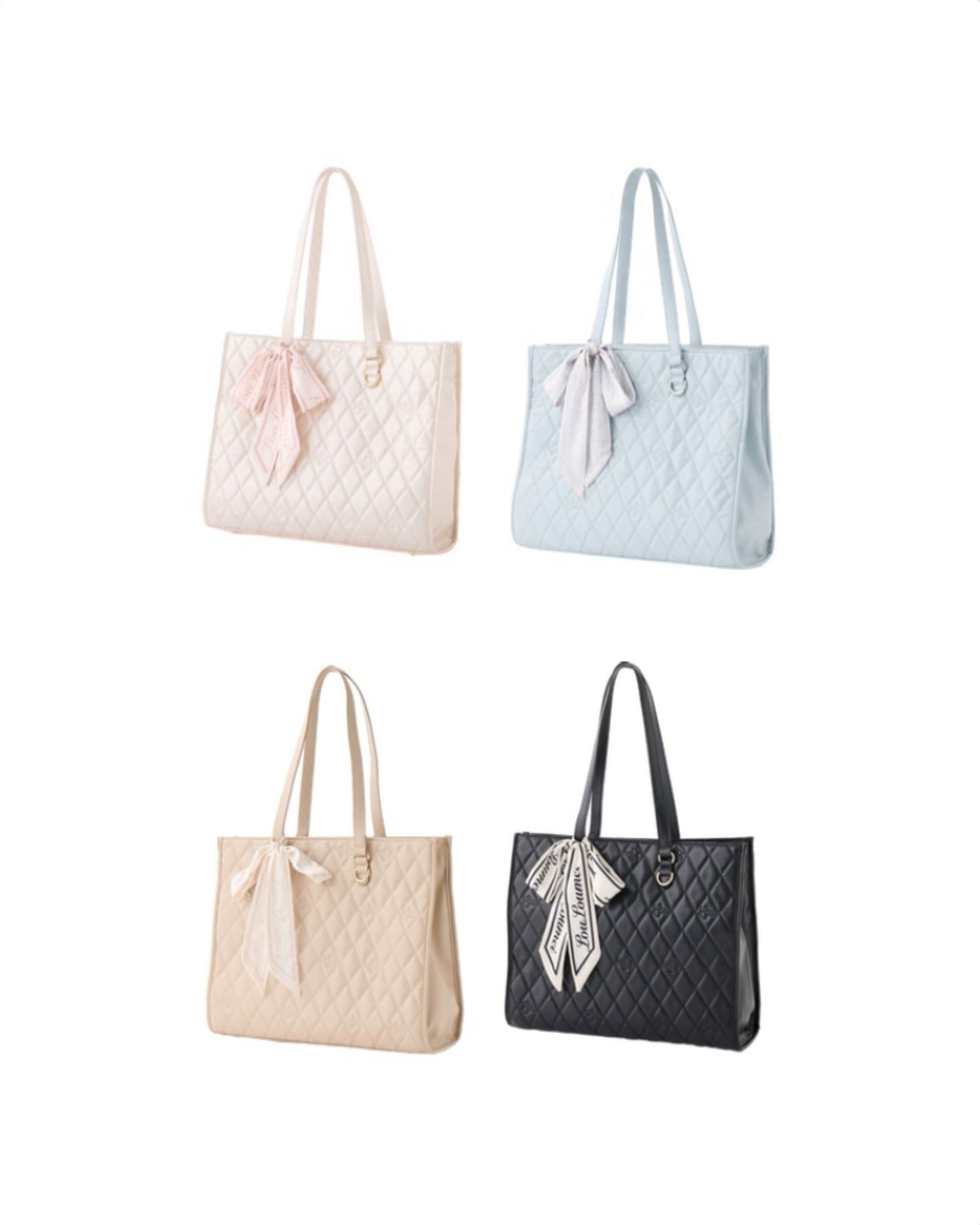 【LouLoumei】スカーフ付きキルティングキャリーオントート/自立可能
