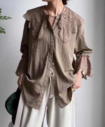 総レースの素材でコーディネートに少し甘めの要素をプラスしてくれます。