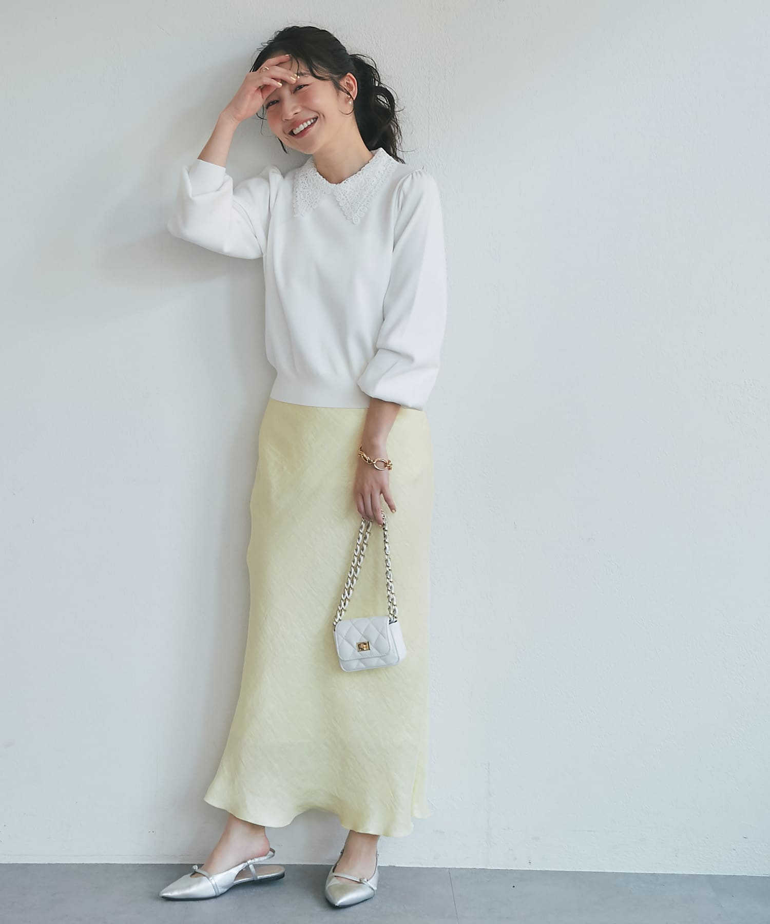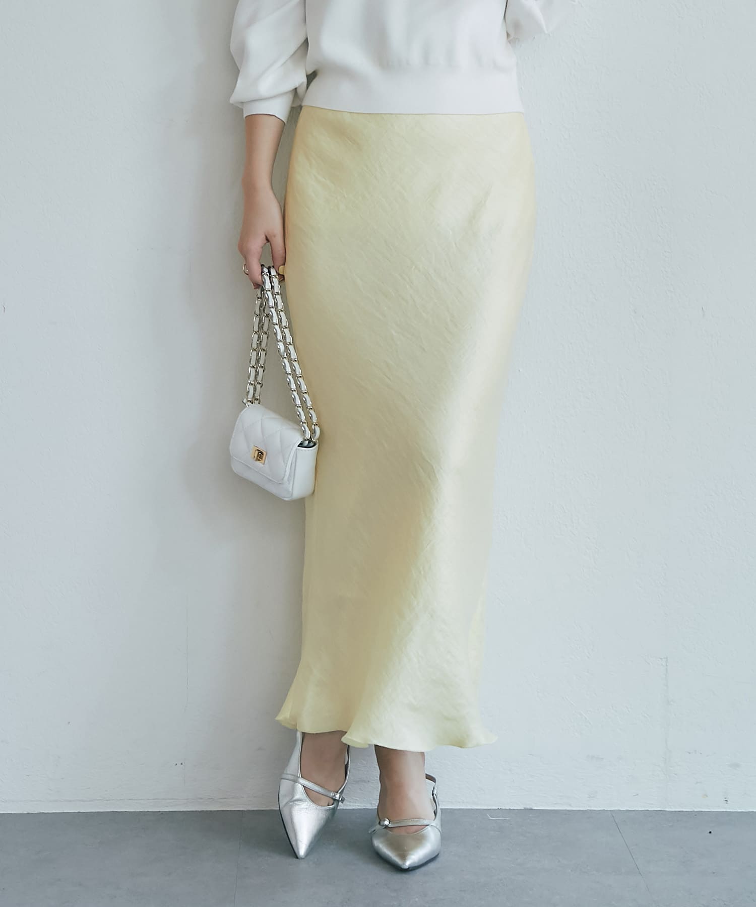 上品な光沢感とすっきりとしたしなやかなシルエットが女性らしいマキシスカート。