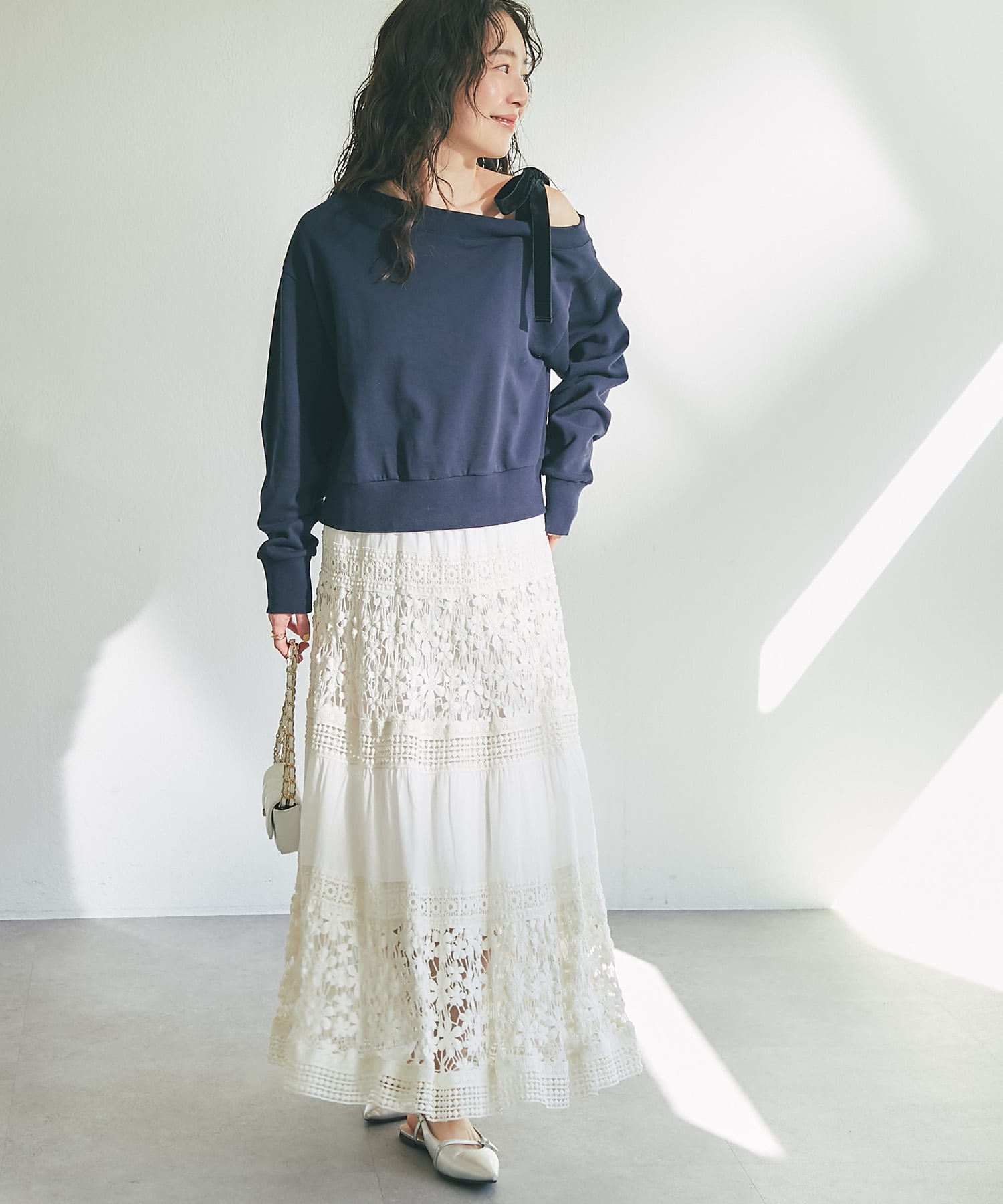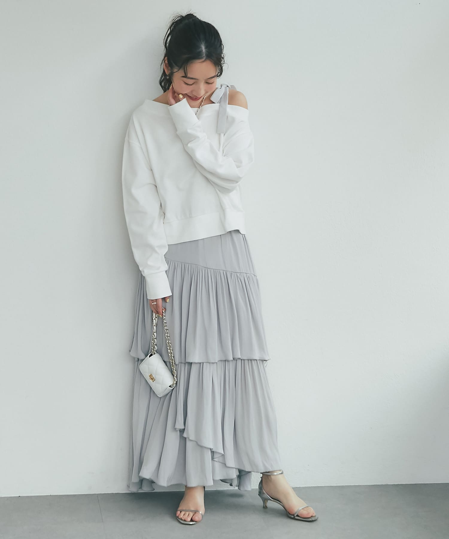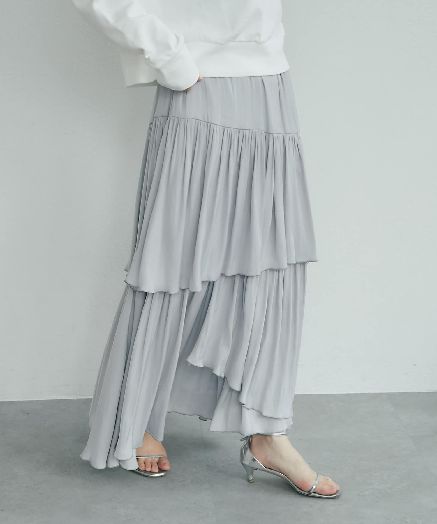 重なり合うようなデザインで揺れる裾が魅力的な一枚。