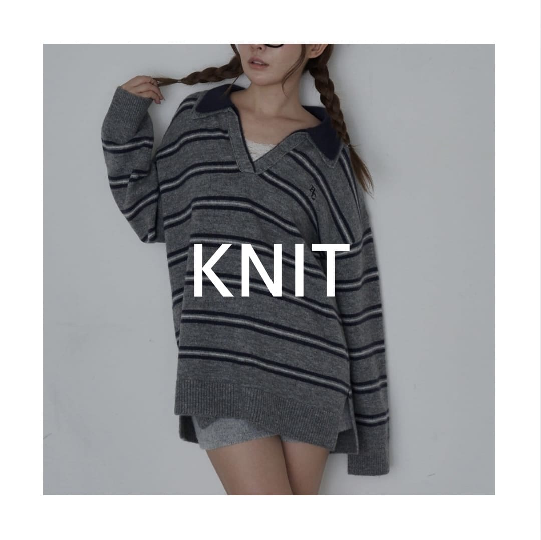 【WEB限定】スキッパーポロ刺繍ニット/襟付きニット