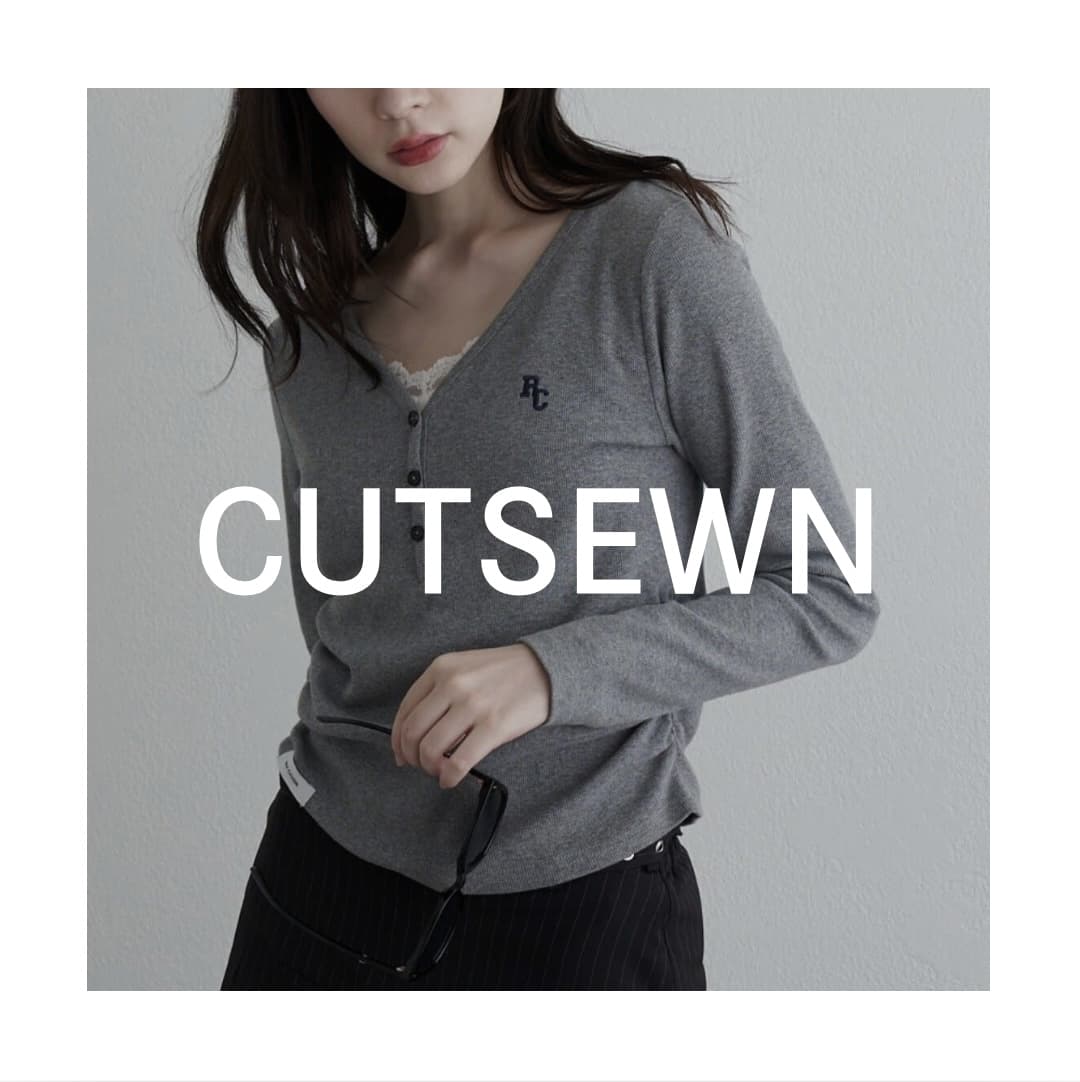 【華奢見えが叶う/追加生産決定】Vネックヘンリー胸刺繍ロングTシャツ