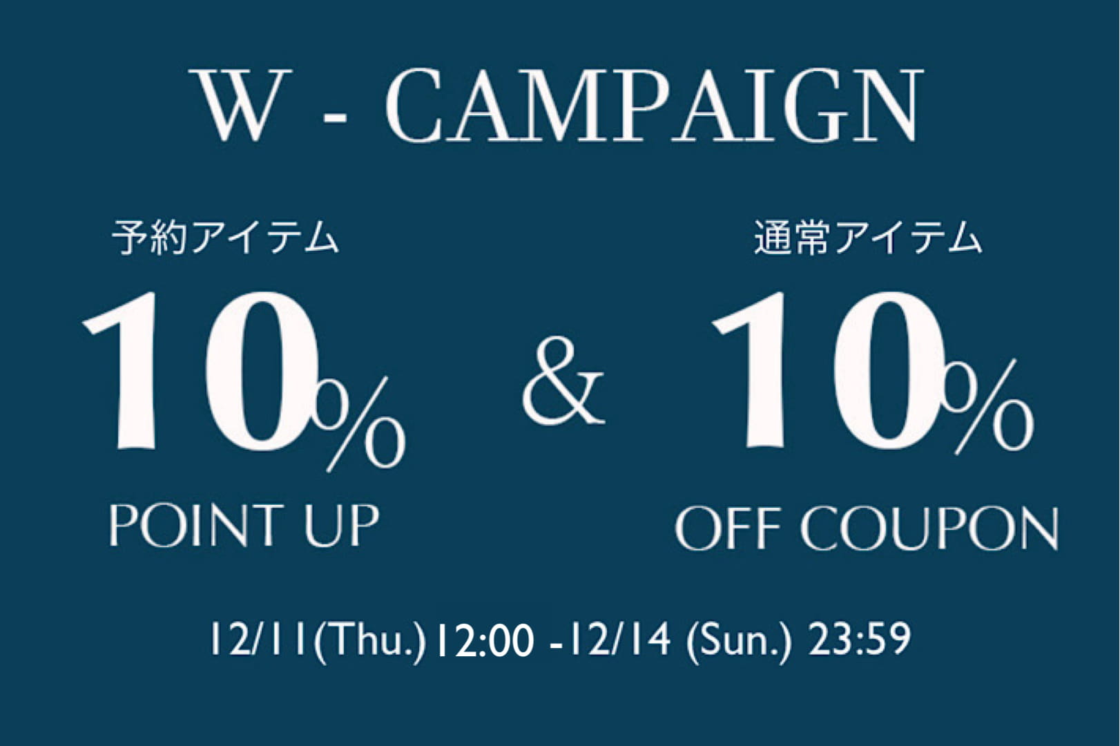 Wでお得!予約アイテム10%OFFポイントアップ&通常アイテム10%OFFクーポンキャンペーンを開催いたします。