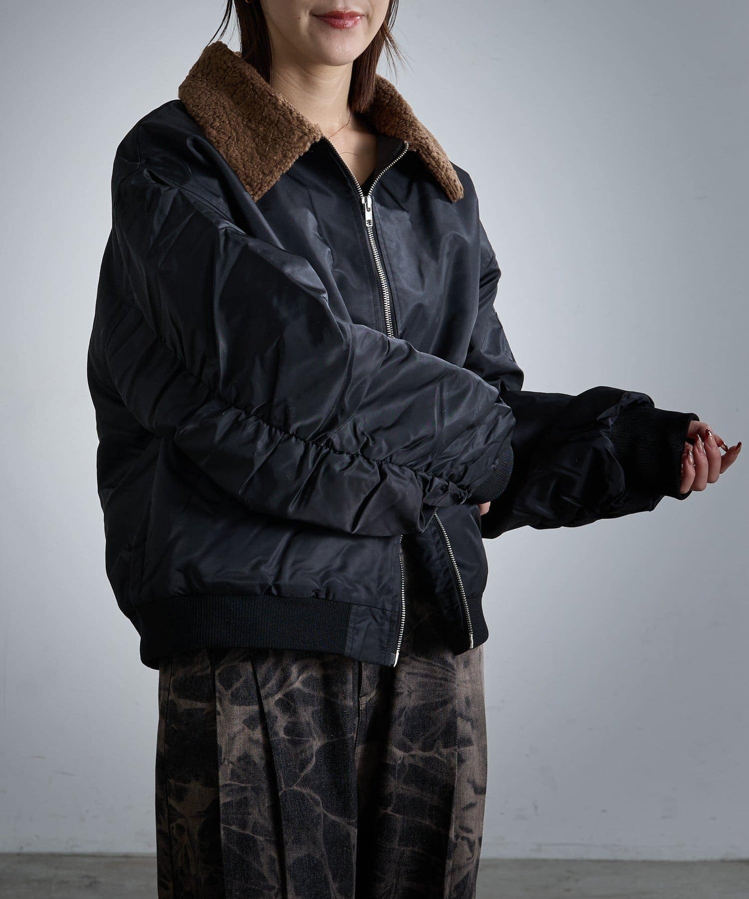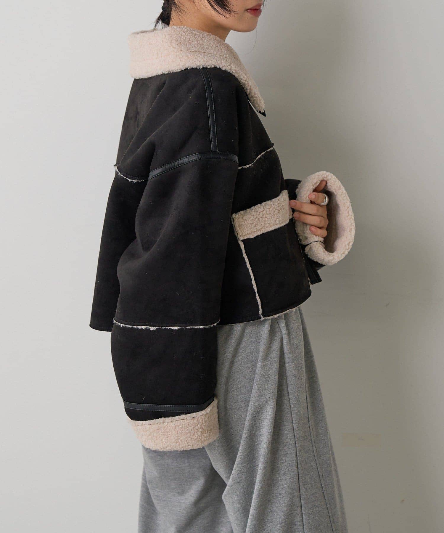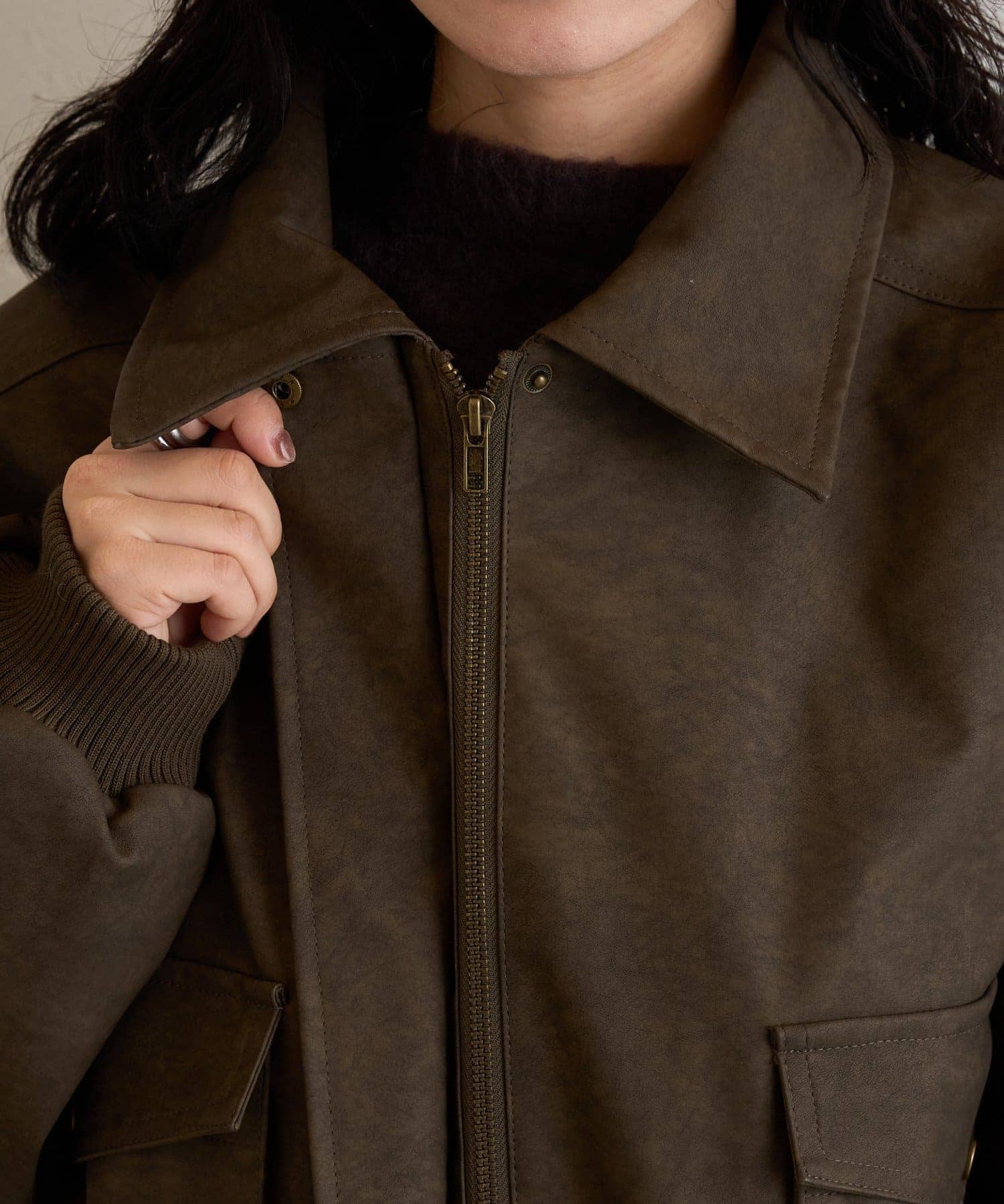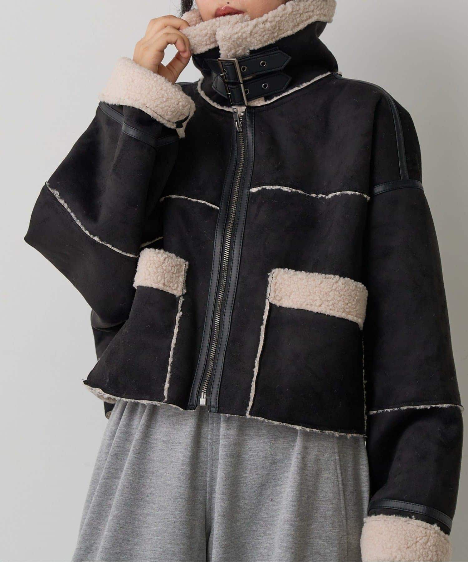 2WAYカラー中綿合皮ブルゾン