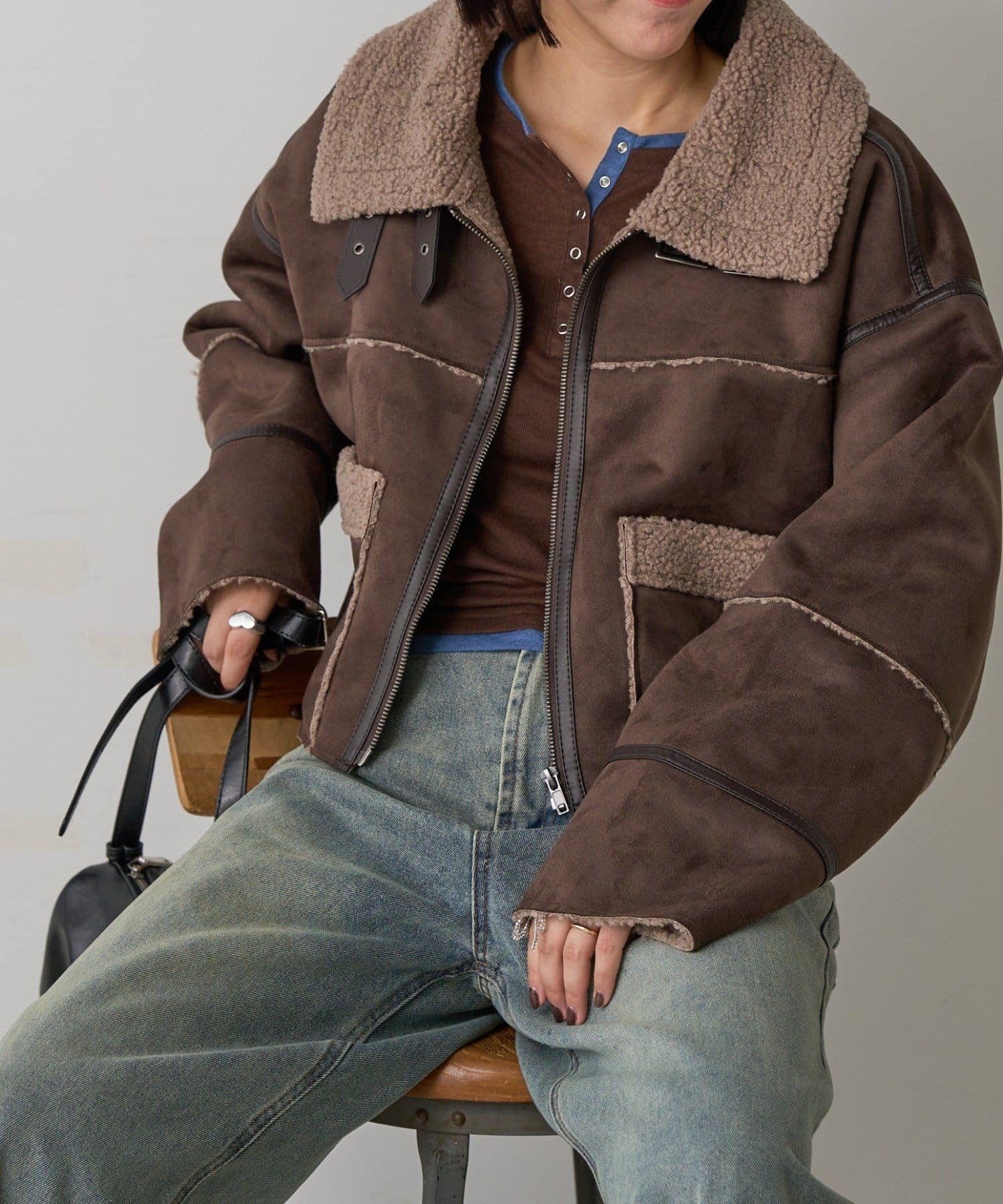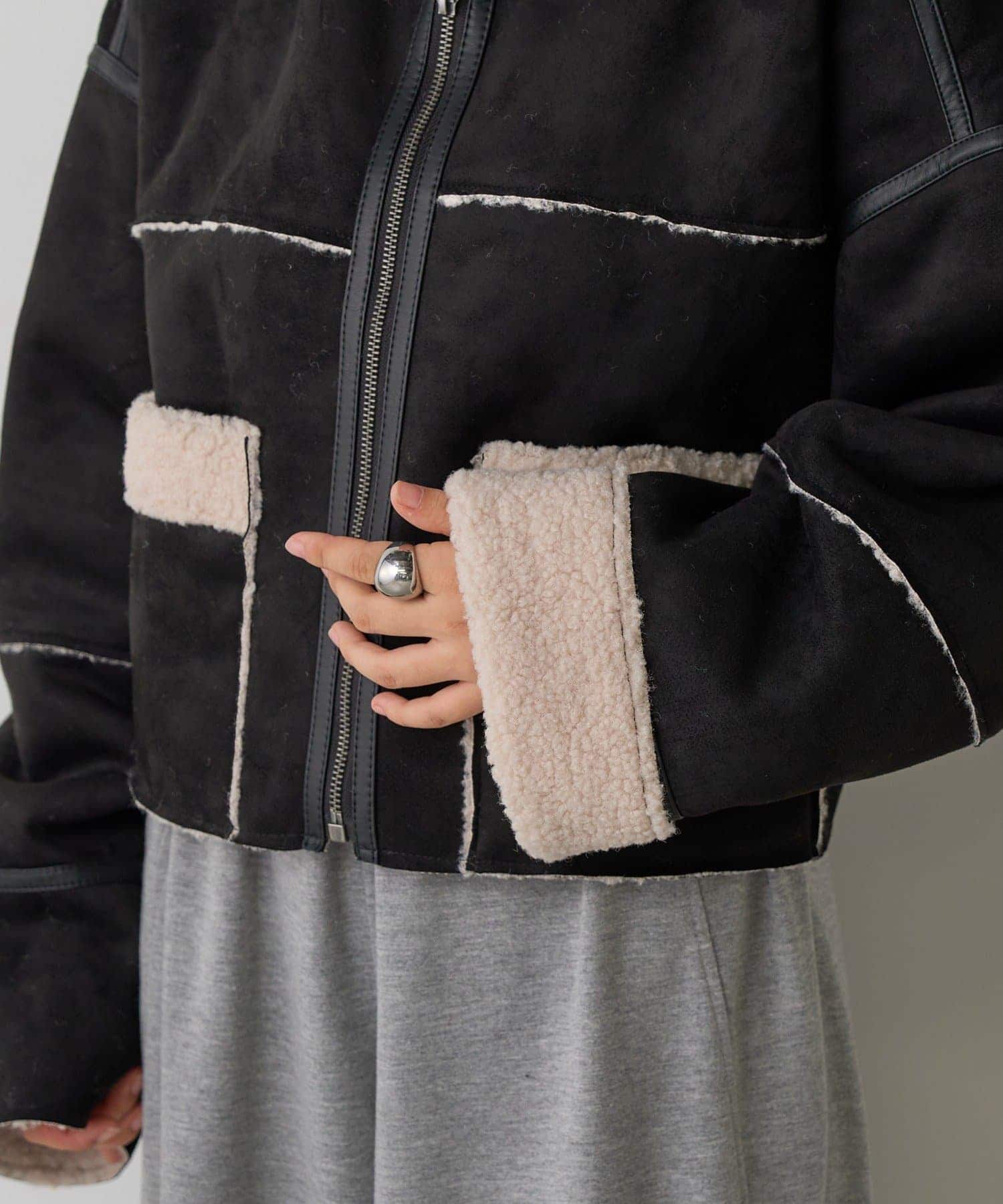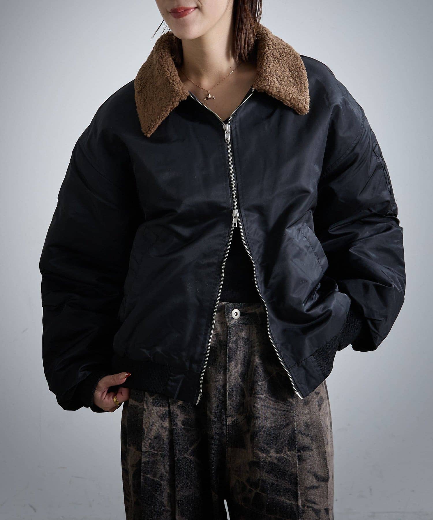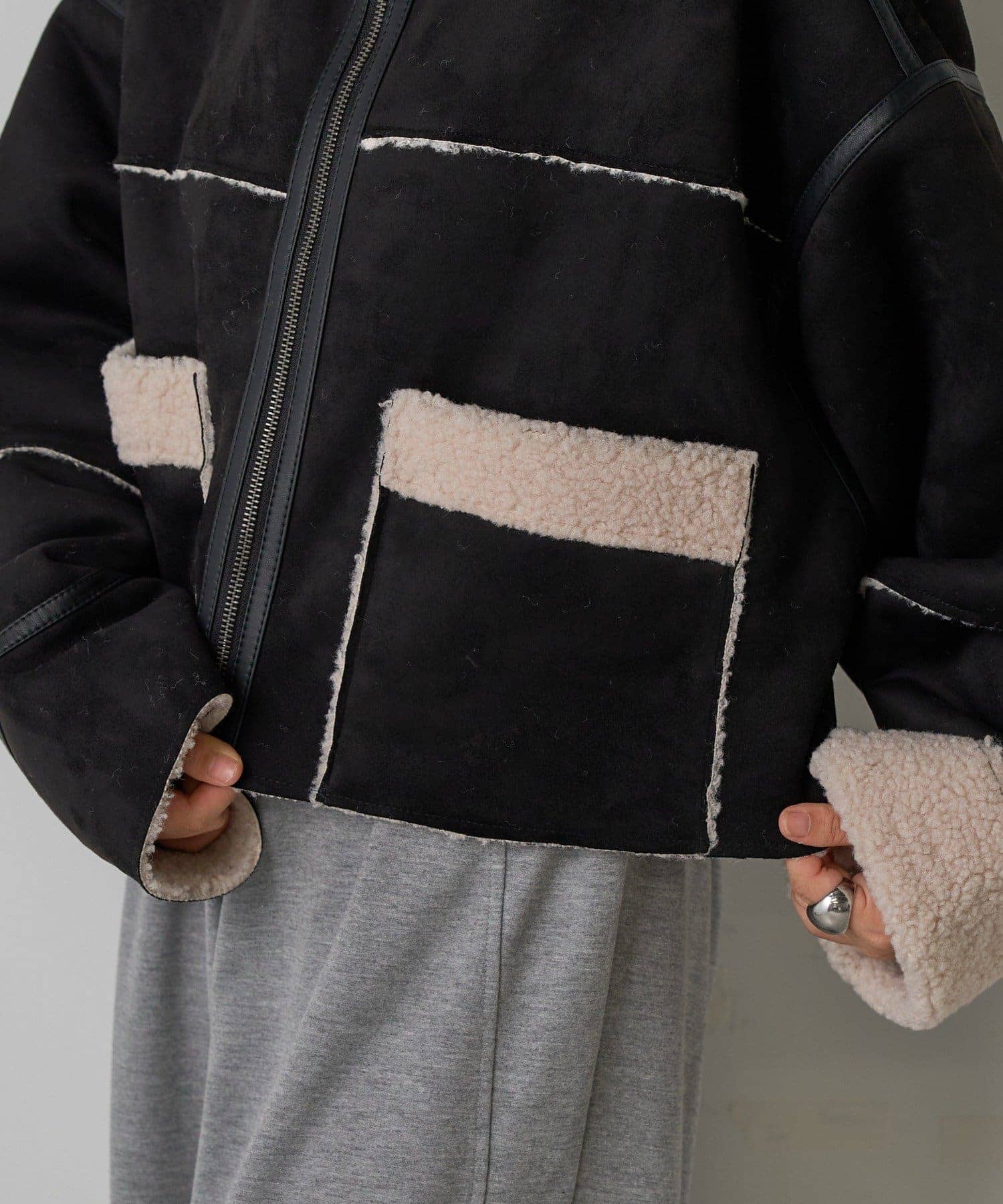 2WAYカラー中綿合皮ブルゾン