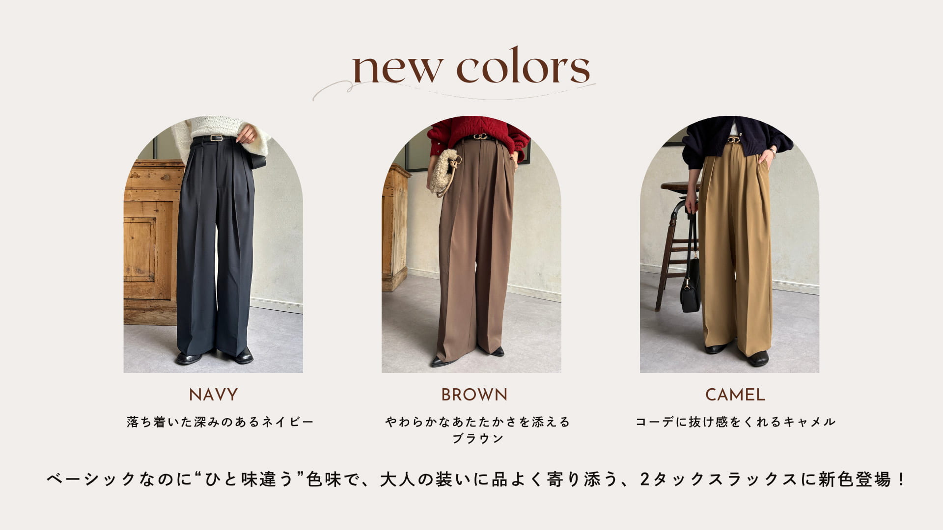 待望の新カラー「ブラウン,ネイビー,キャメル」が仲間入り♡