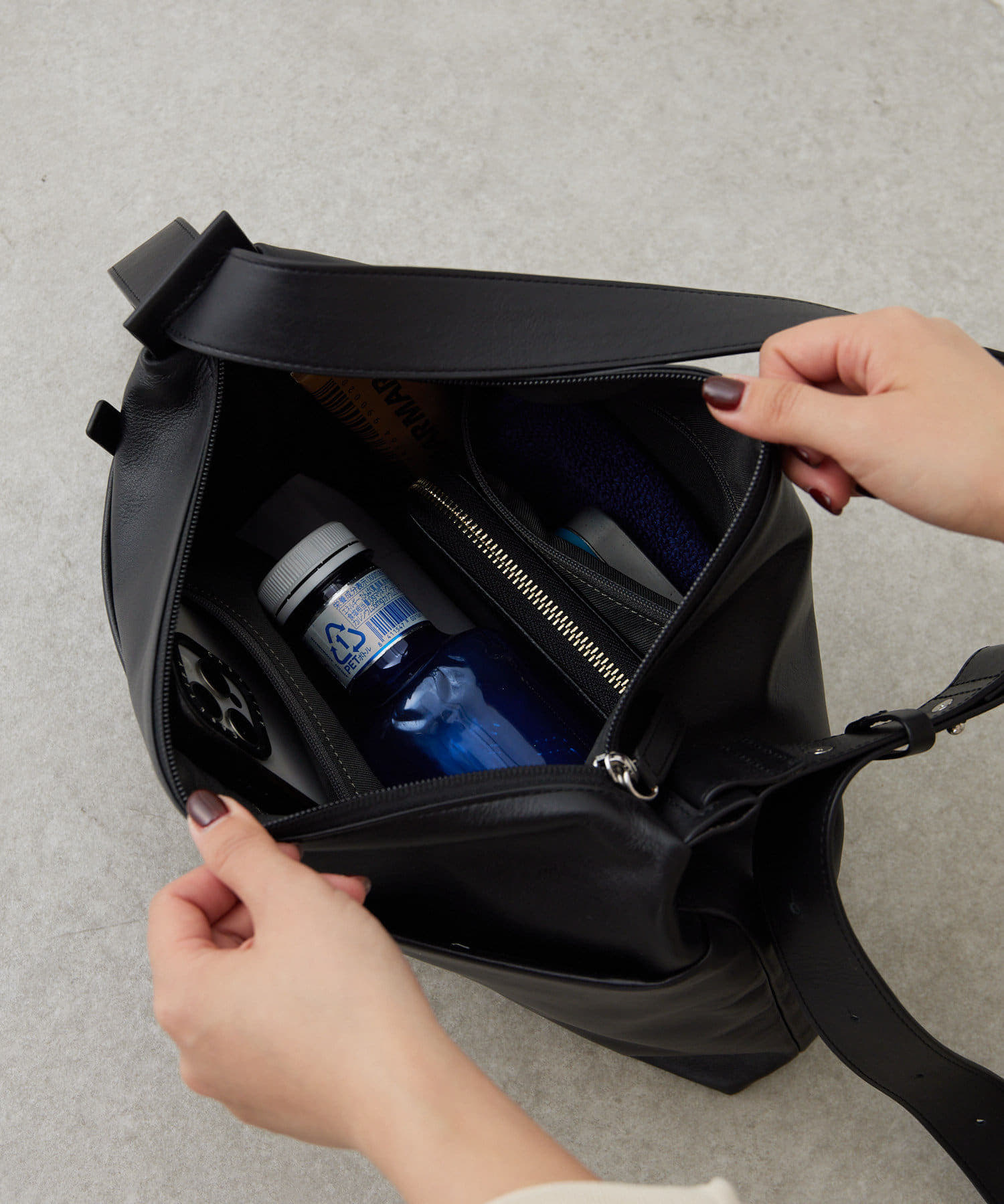 軽くて柔らかくて大容量。探していたイメージにぴったりでした。通勤の時に斜めがけで使ってますが、コートにとても似合うデザインでオシャレです。