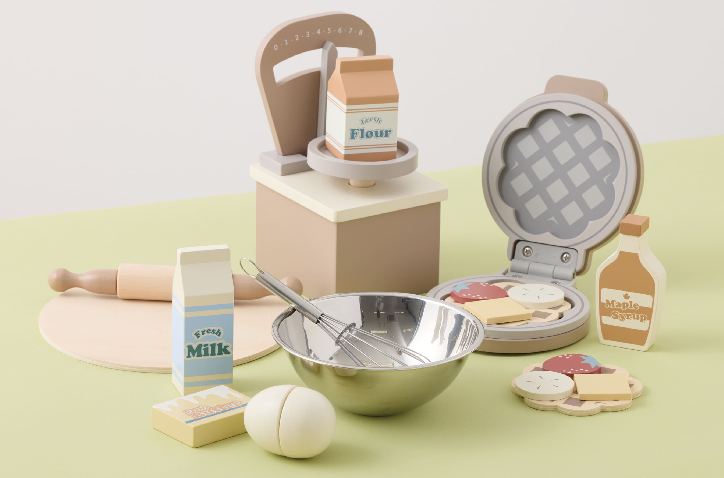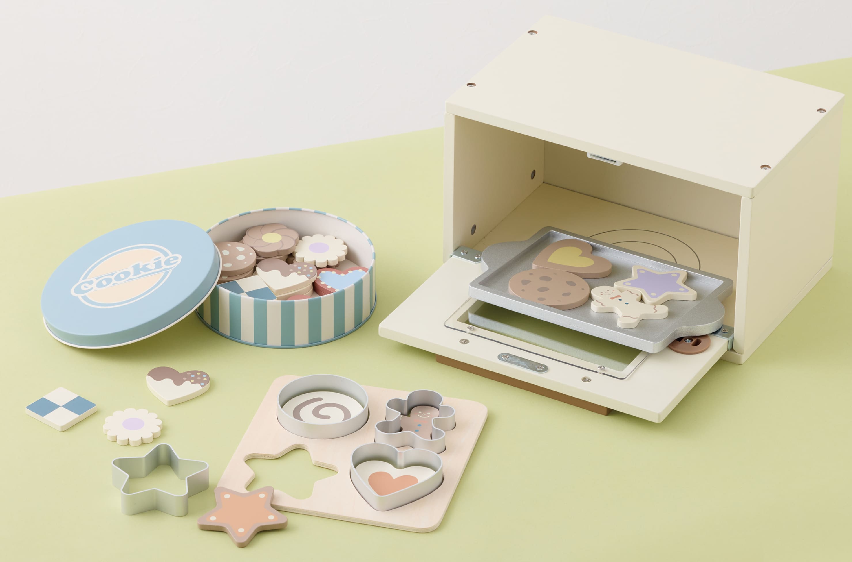 スイーツや定食などのお店屋さんごっこにぴったりなアイテムから、コンロやオーブンレンジといった本格的なおままごとが楽しめるアイテムまで、幅広くラインナップ。