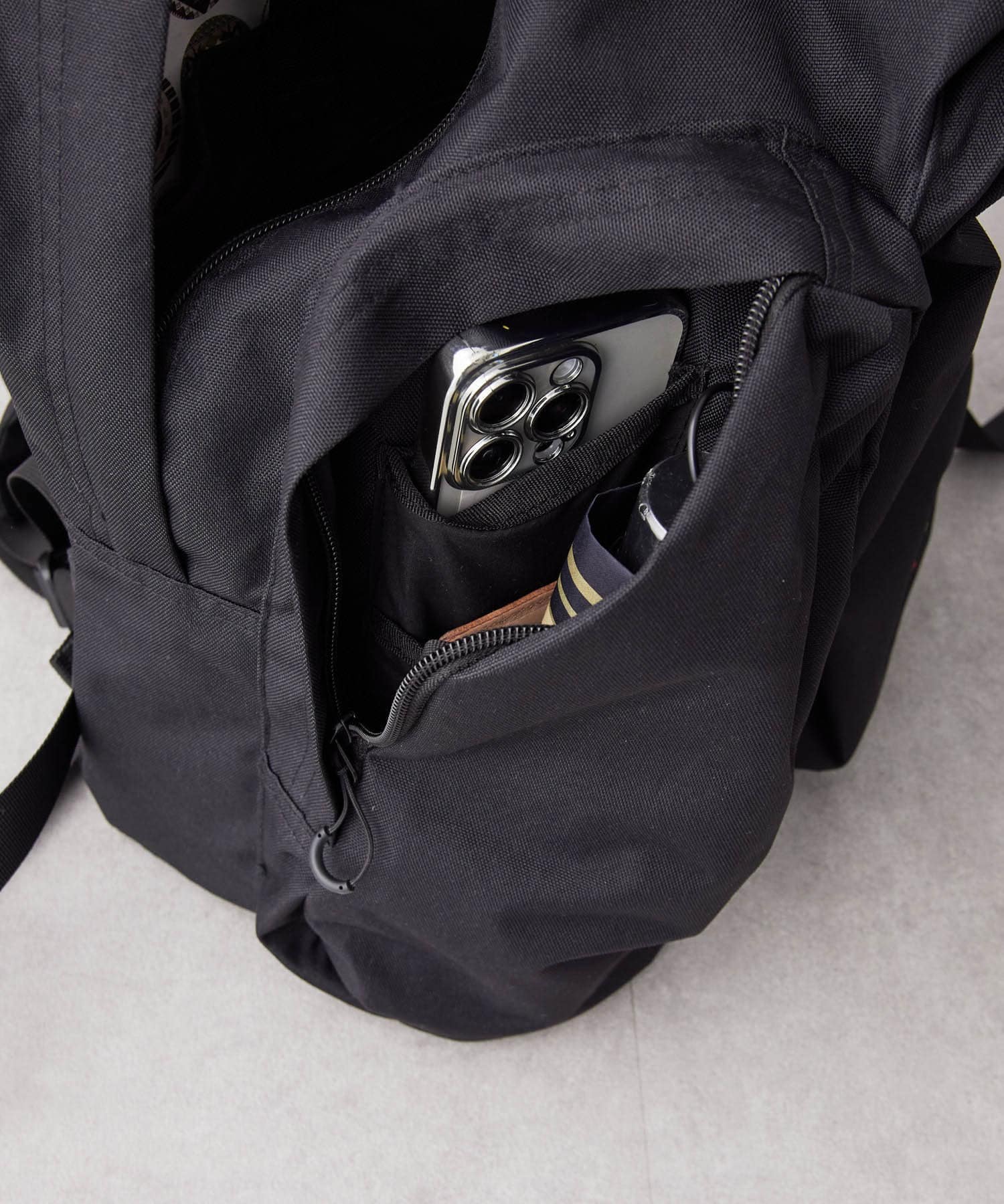 外ポケットは500mlペットボトル、折り畳み傘、長財布が収納可能なサイズ。