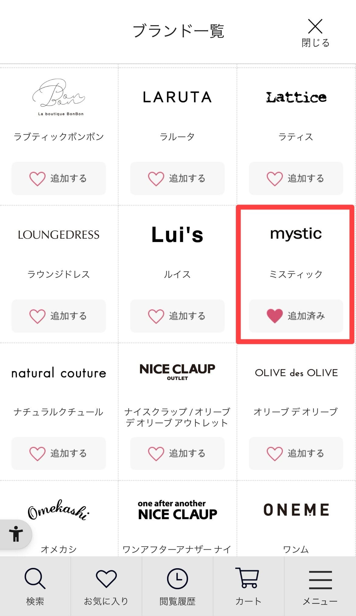 ❷右上のブランドをタップ