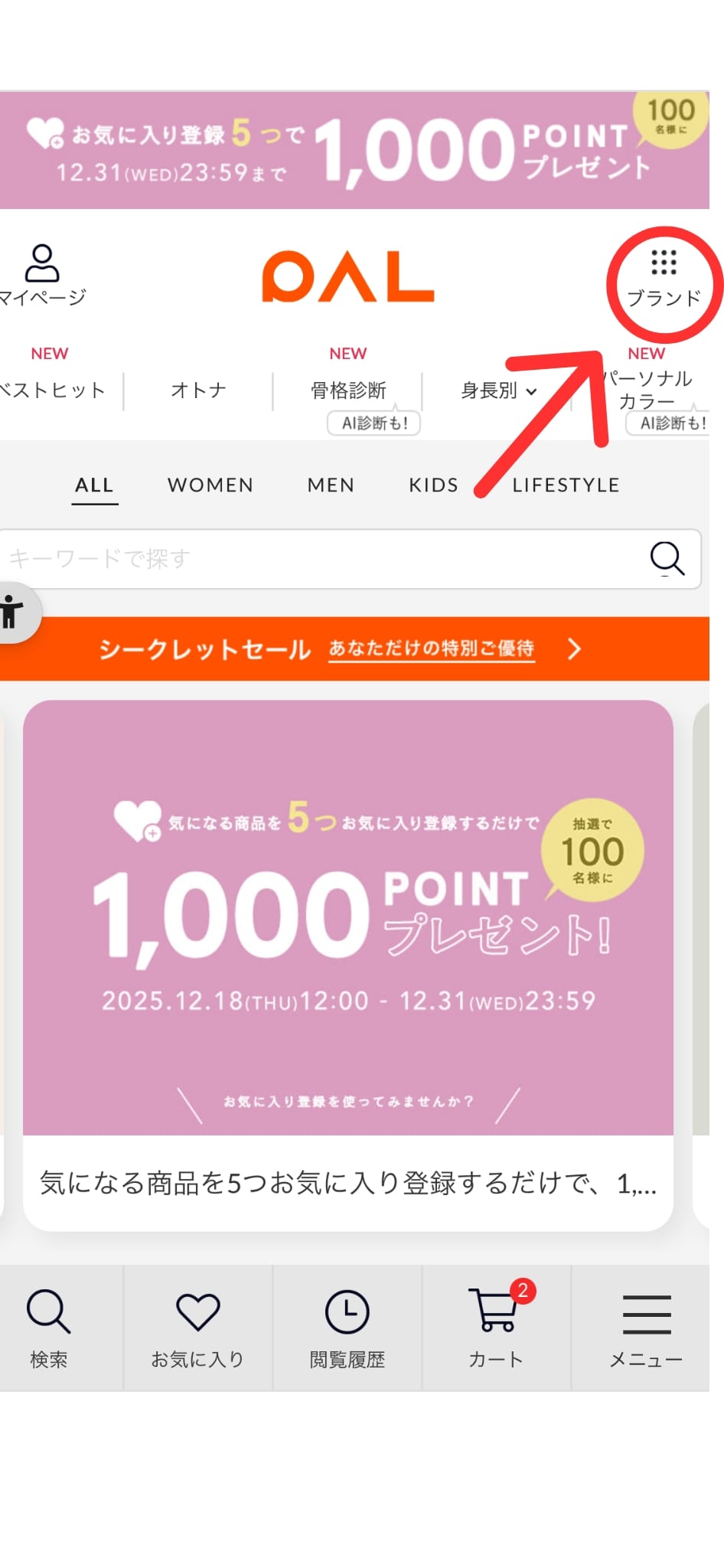 ルーレットはWEB版PALCLOSETでのみ引いていただけます。