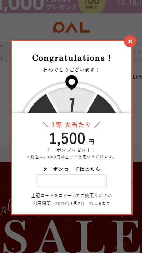 クーポンの使用期限はルーレットを回した当日限りです。
