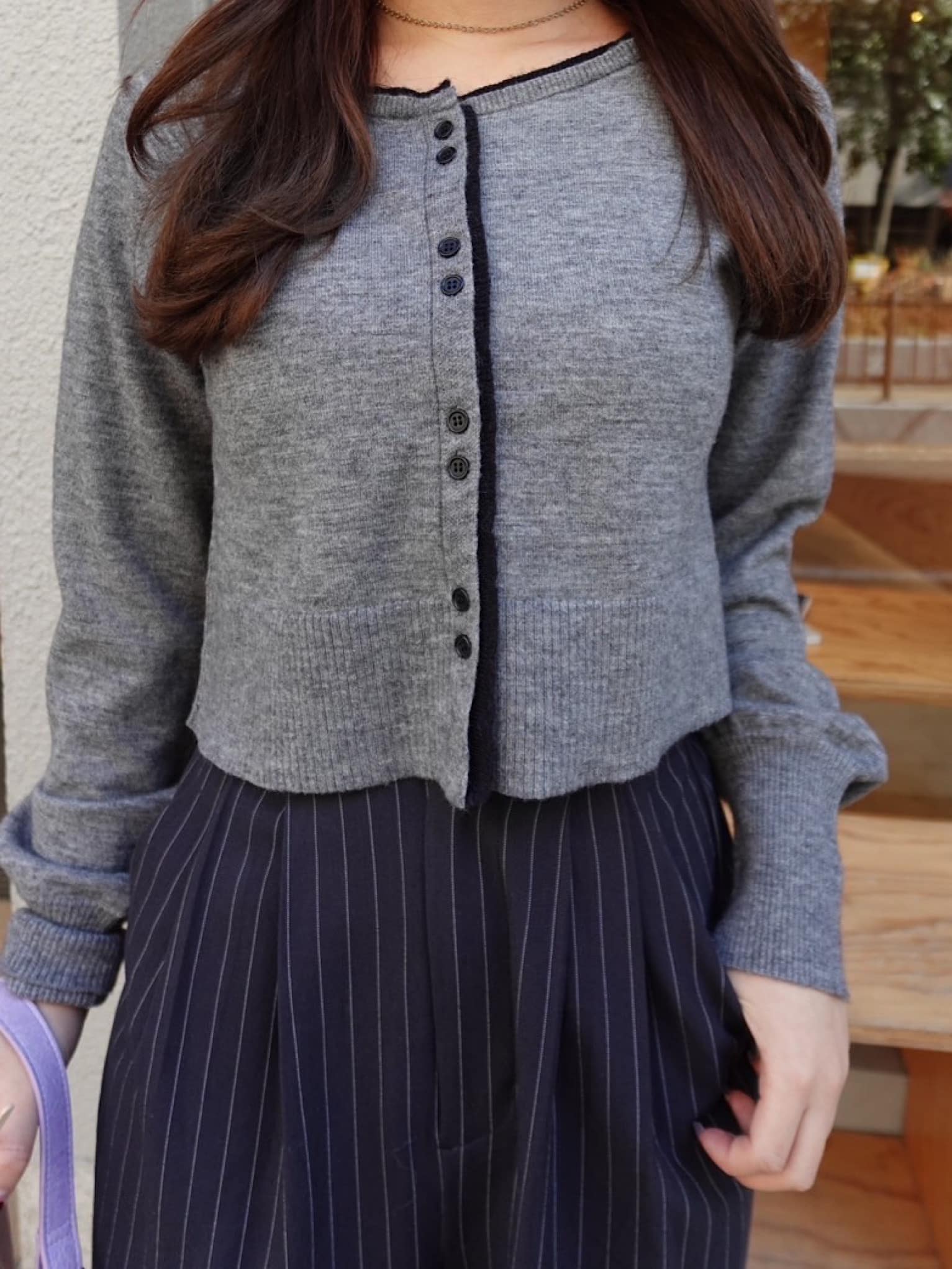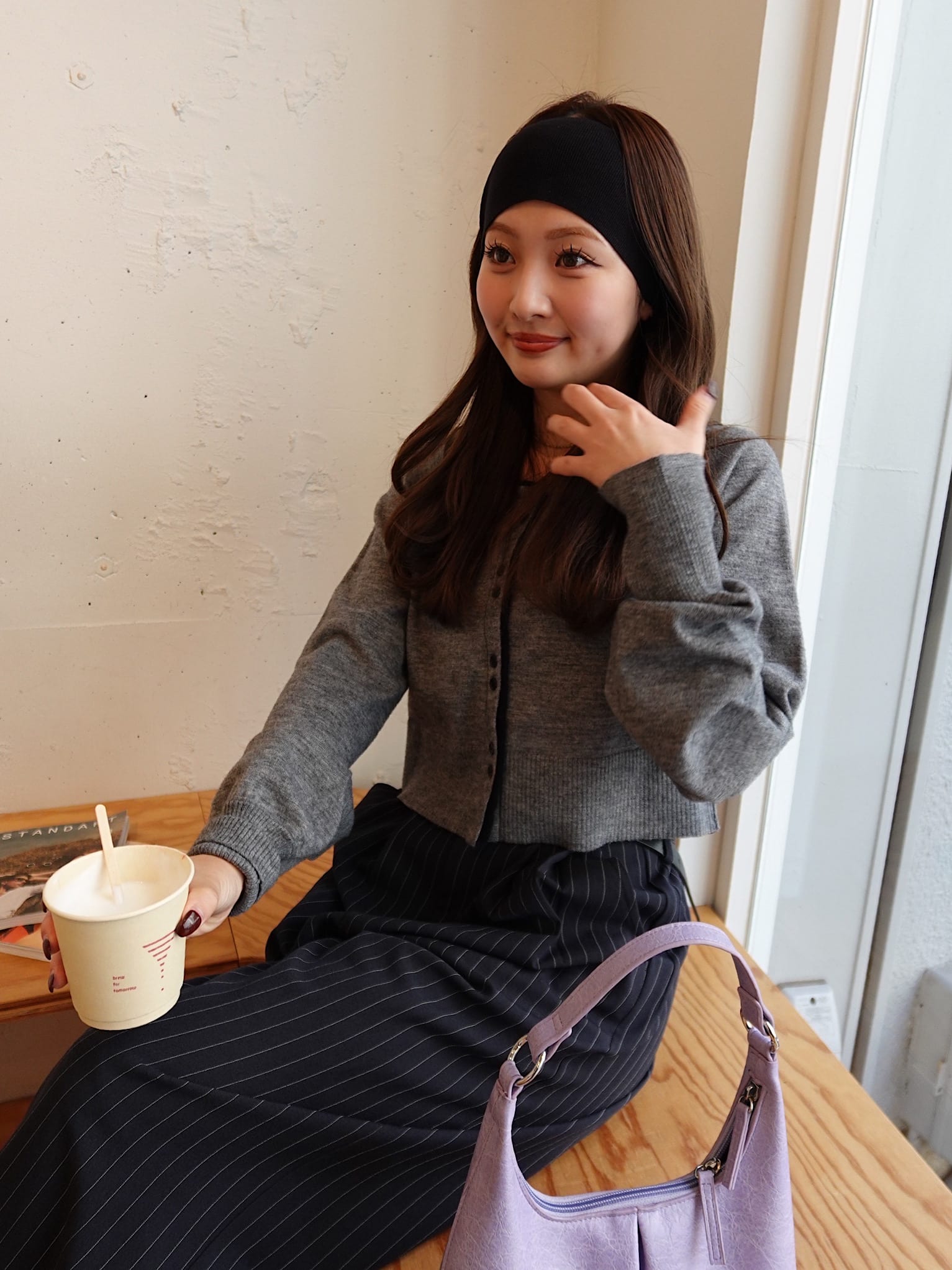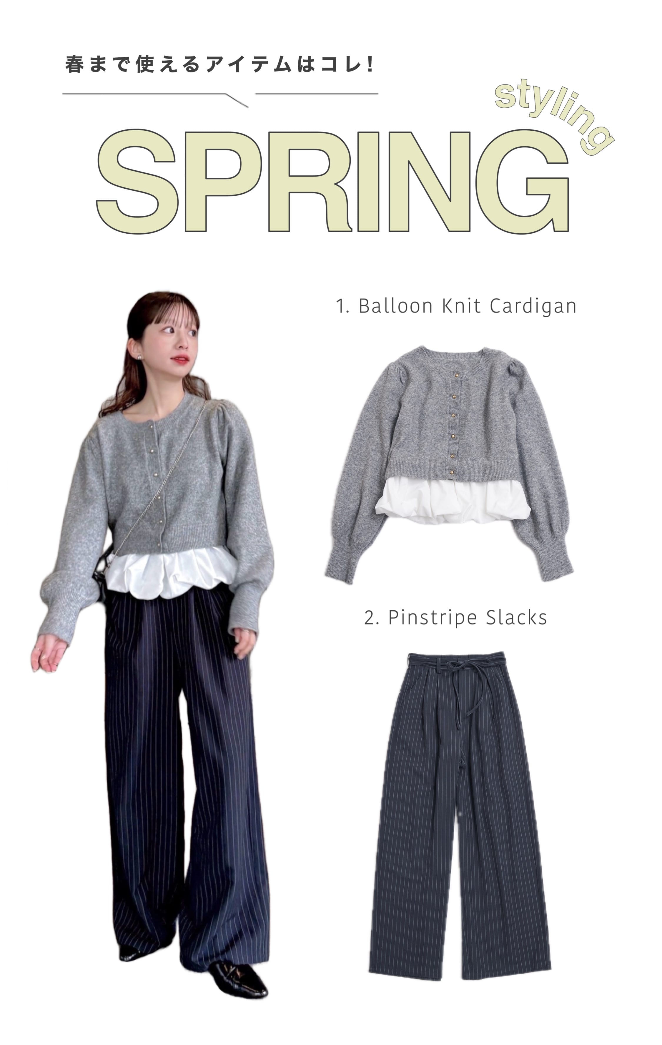 カーディガンタイプになっていて春先まで長く使えるアイテム。