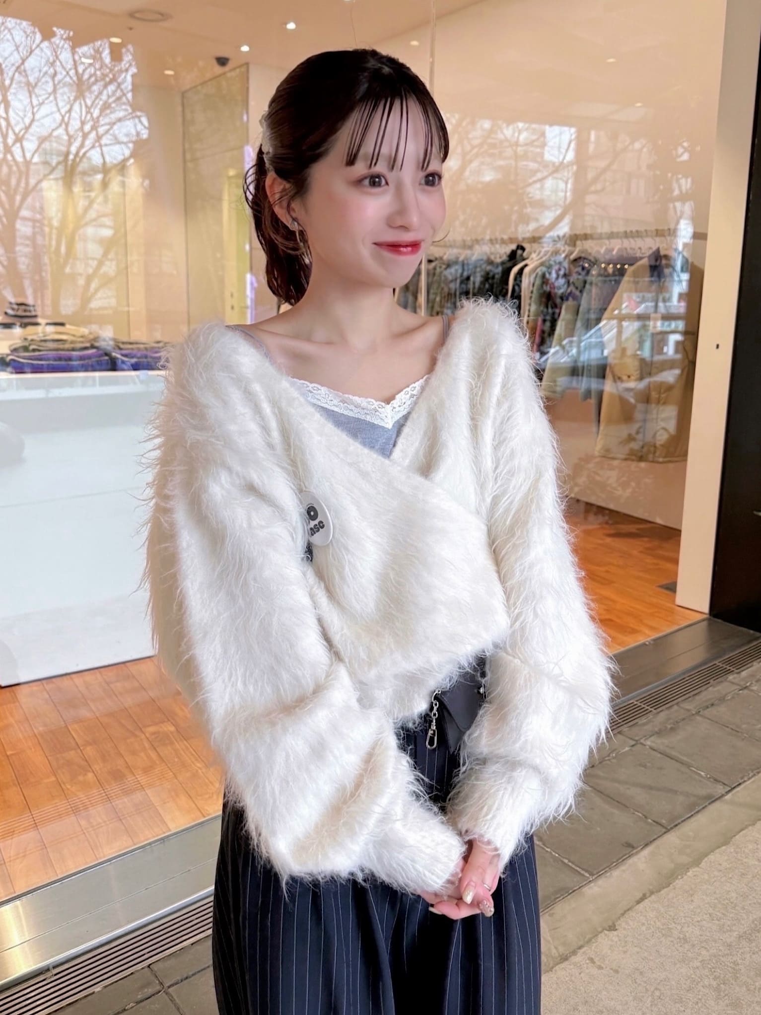 ホワイト×シャギ―素材が冬girlの可愛さ2倍にしてくれるニット!