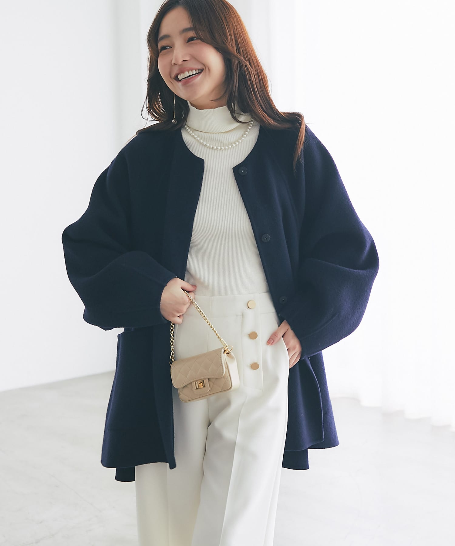30代半ばでなかなかピンクに挑戦しなくなってきた中、このコートは可愛すぎて購入しました。