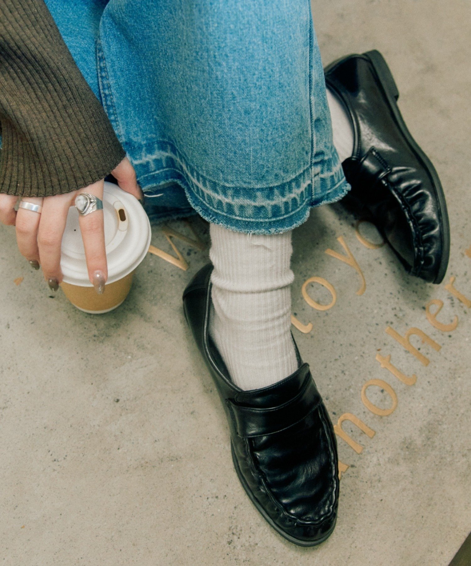 【オケージョン対応】ギャザーデザインアソート素材フラットローファー
