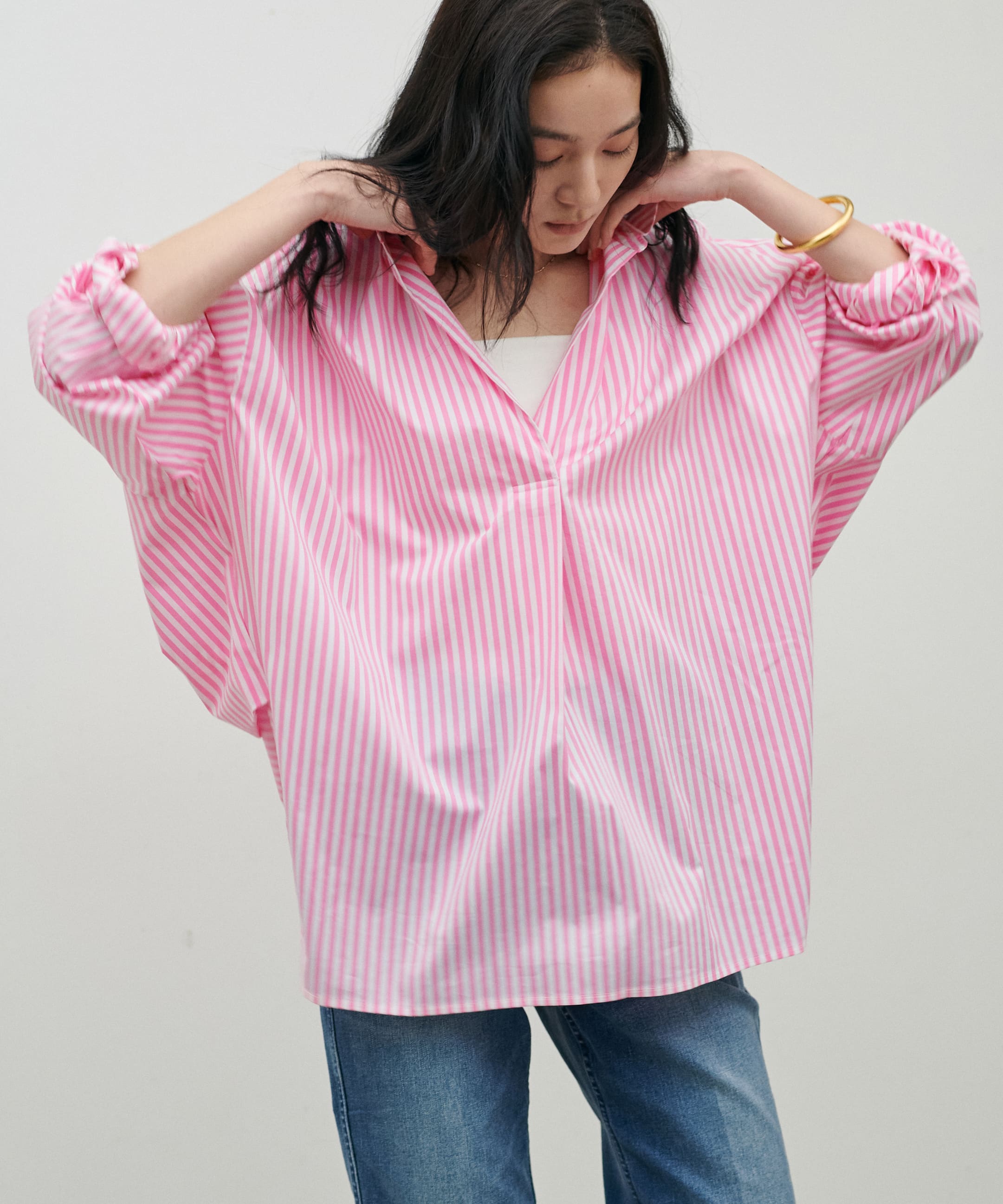 ギャザースリーブ前後2WAYブラウス