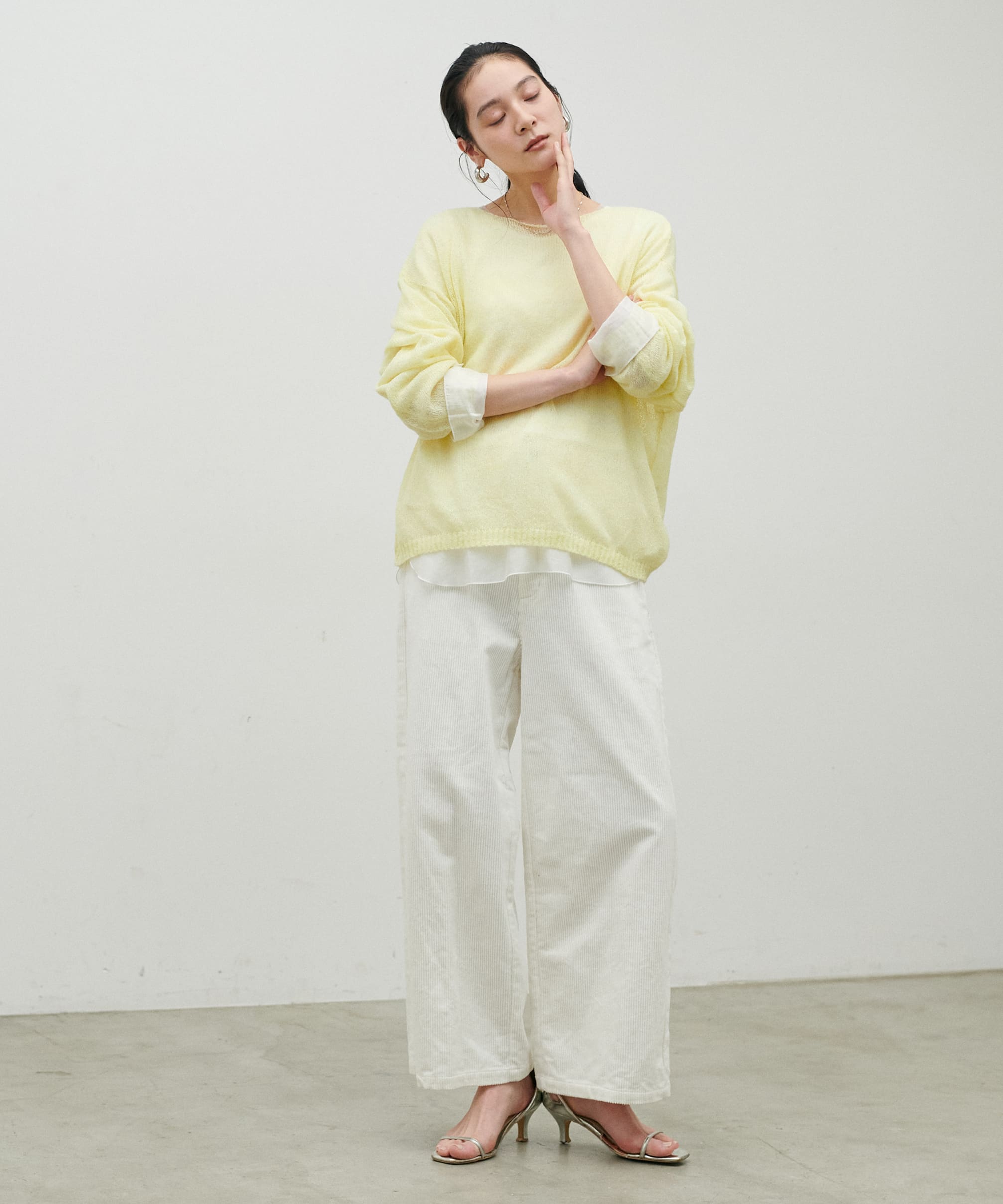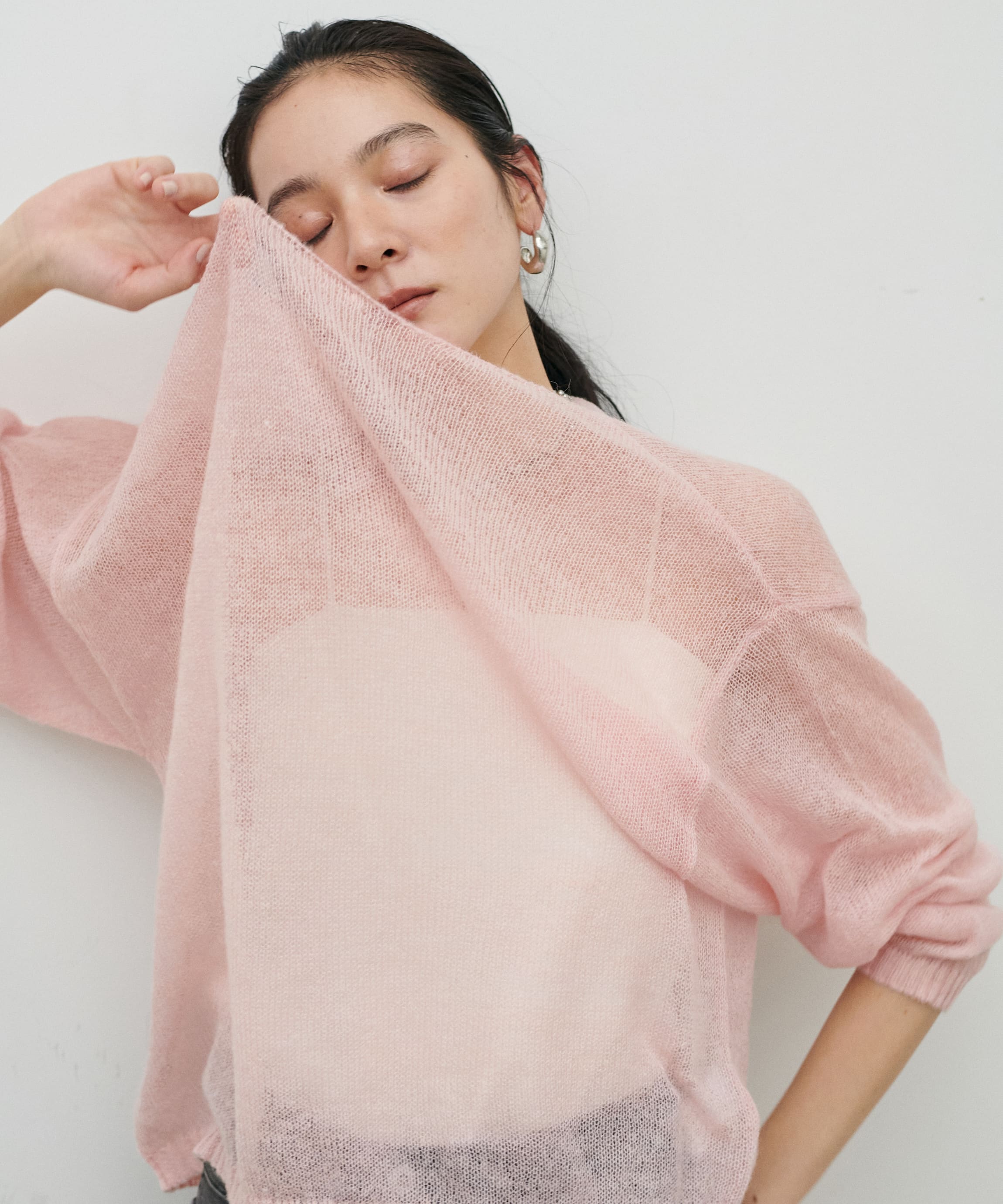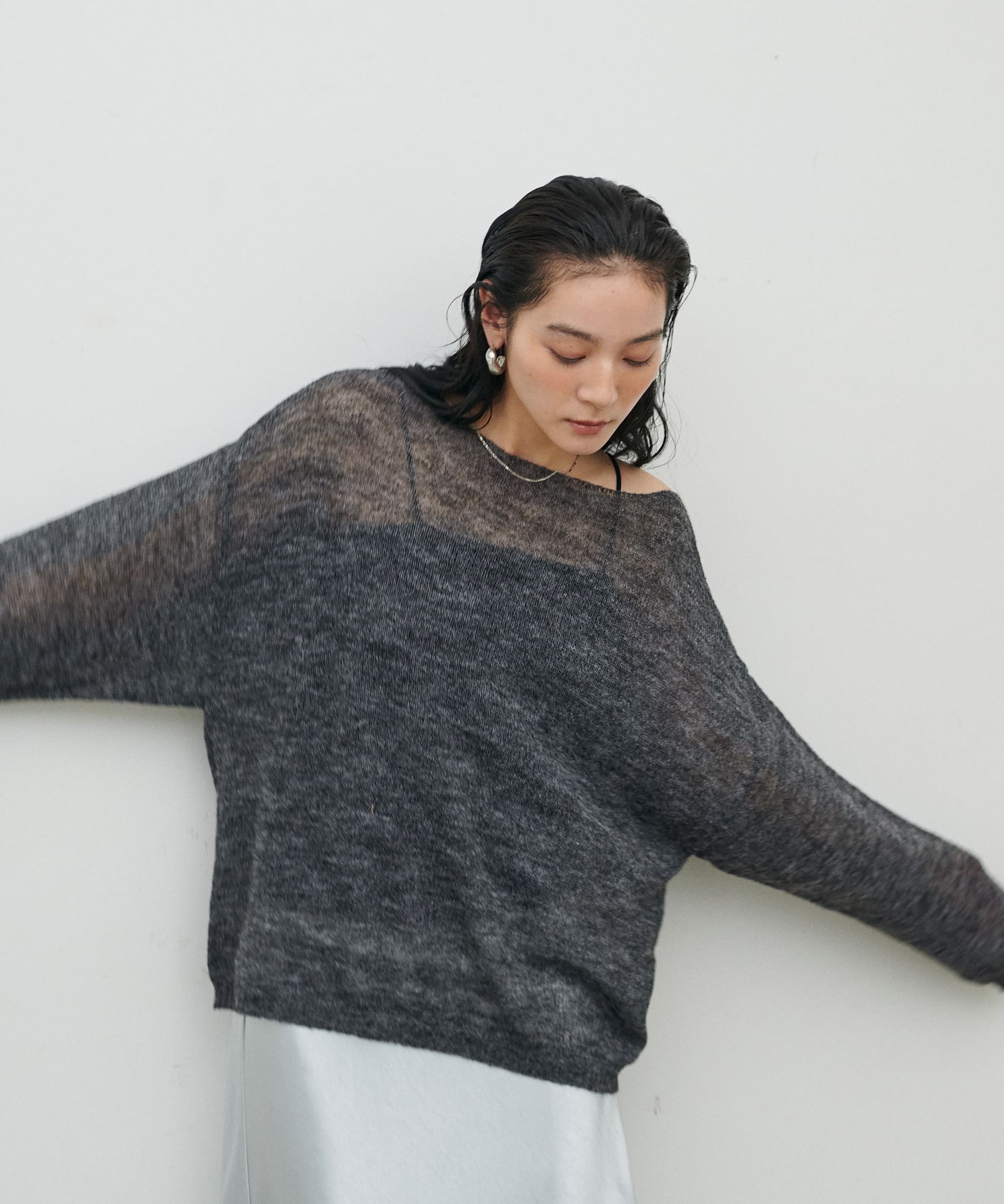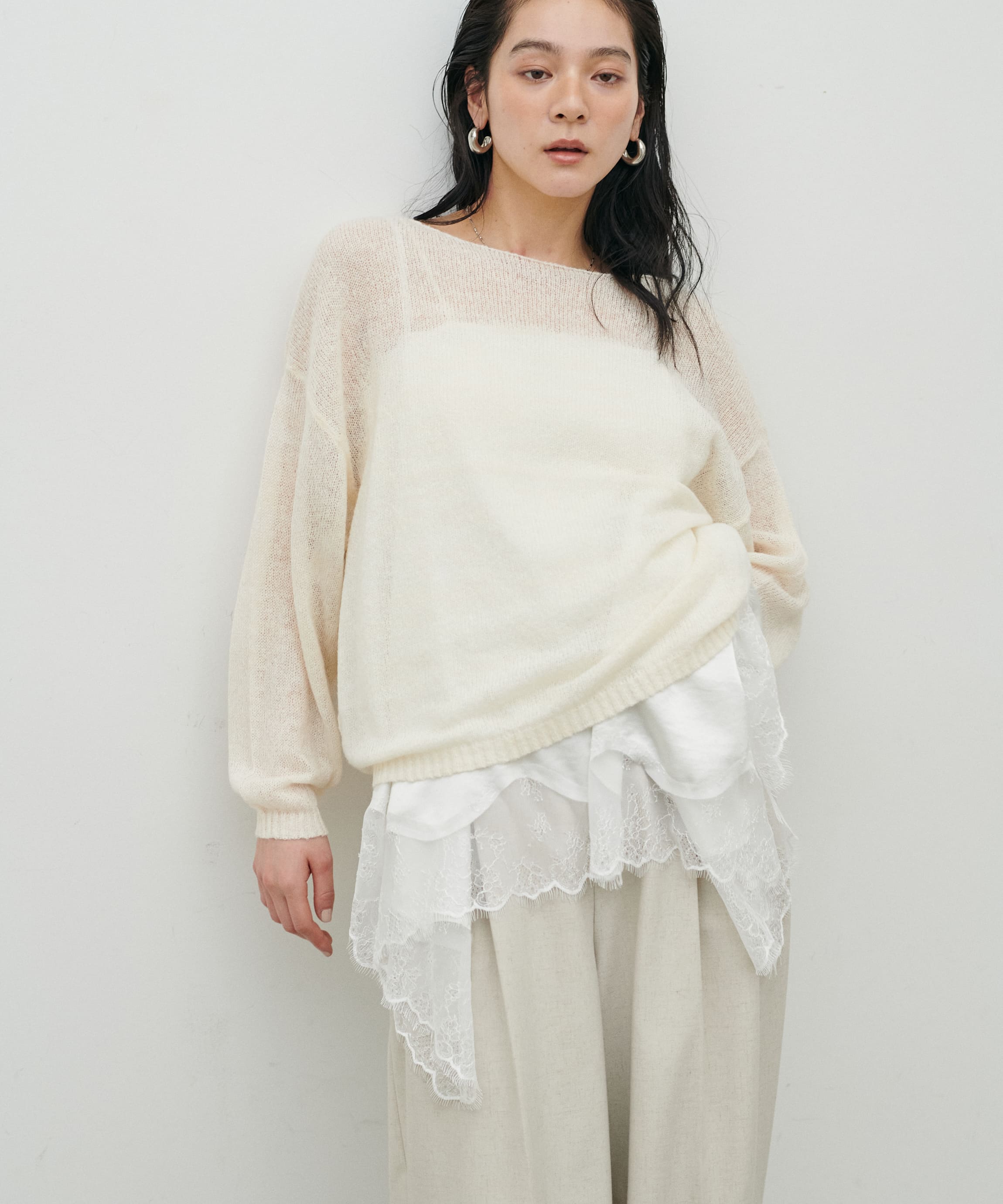 透かしモヘアボートネックプルオーバー