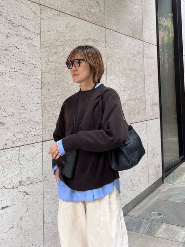 メタルレスで、カジュアルスタイルにとても馴染むのでラフなコーデにも似合います。シンプルな中にも、正面に、レザーのブランドロゴが立体的にデザインされているのがアクセントになって可愛いです!保守的に見えやすいブラックレザーバッグも、これならこなれ感と、旬なカジュアルで周りと差がついて、注目度高いですよ♩ ゆったりジャケットの上からでも肩がけできるバッグは秋冬の強い味方!