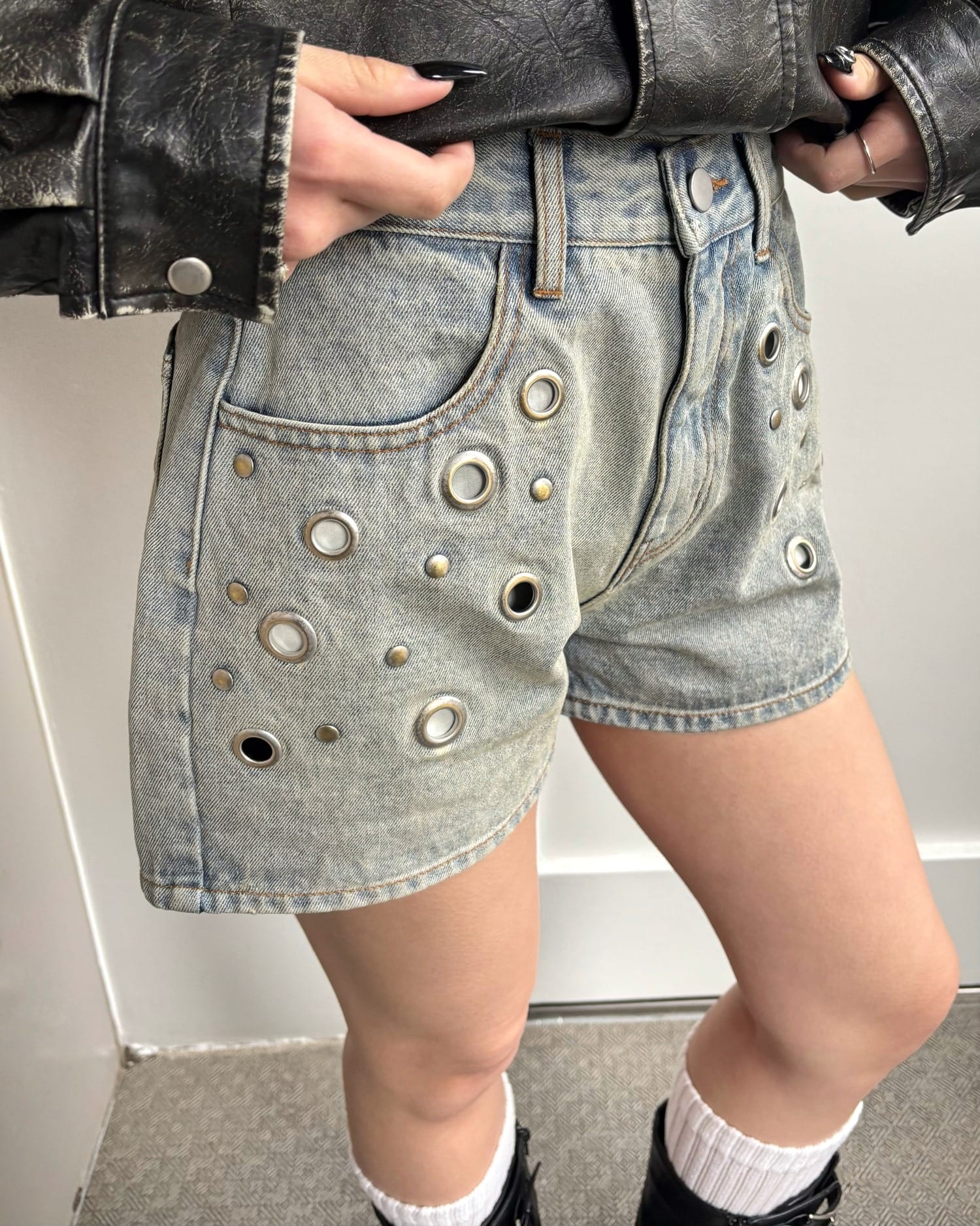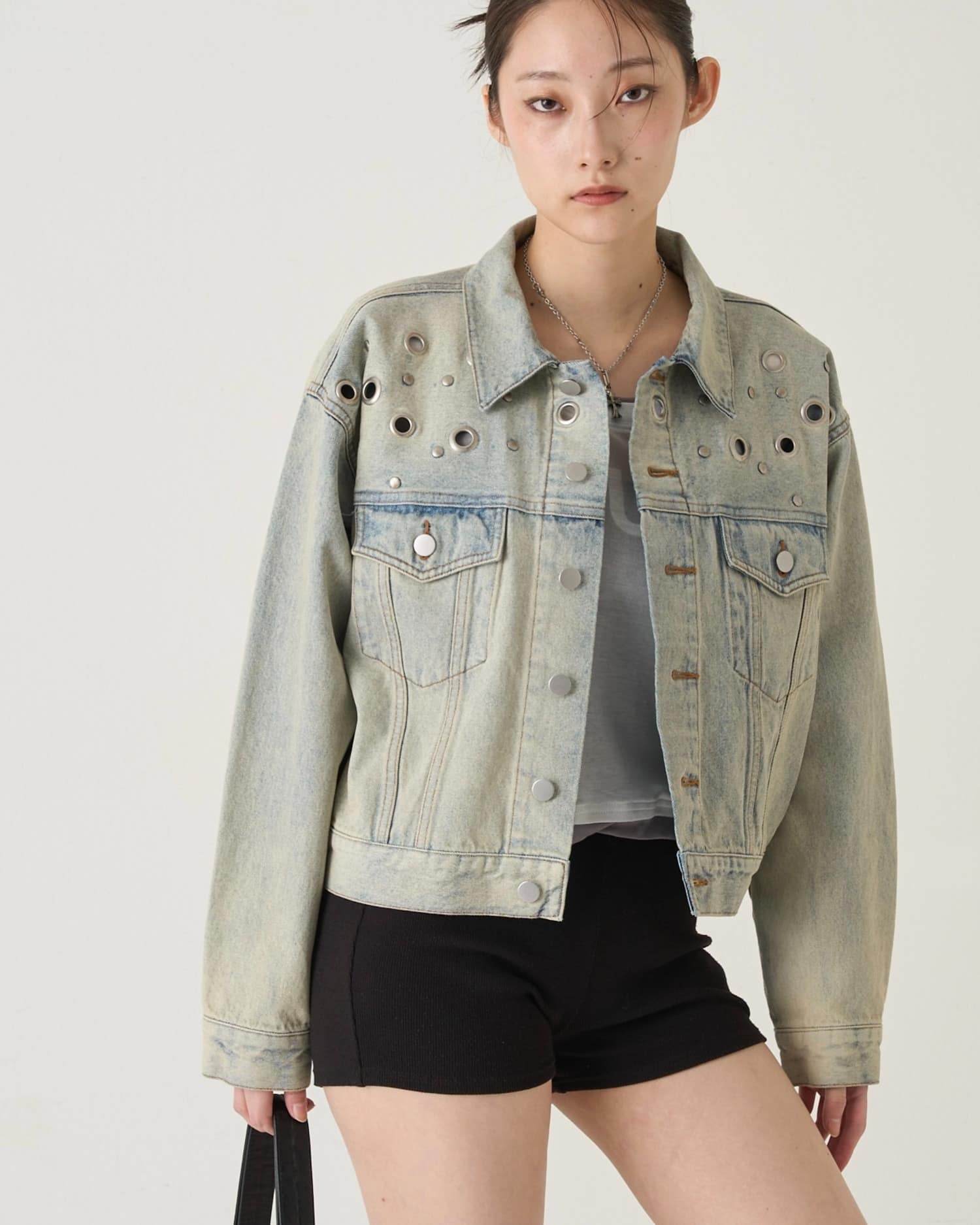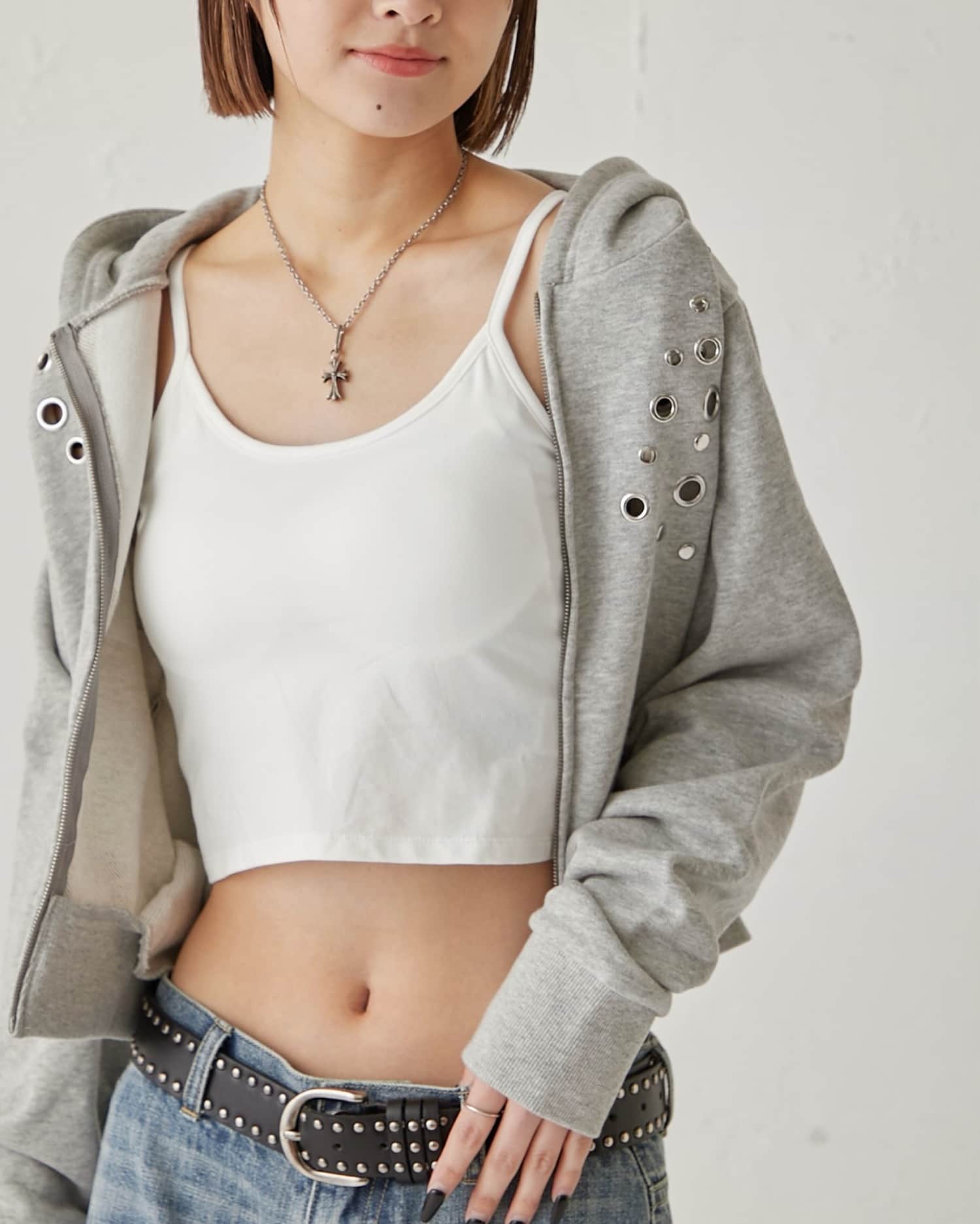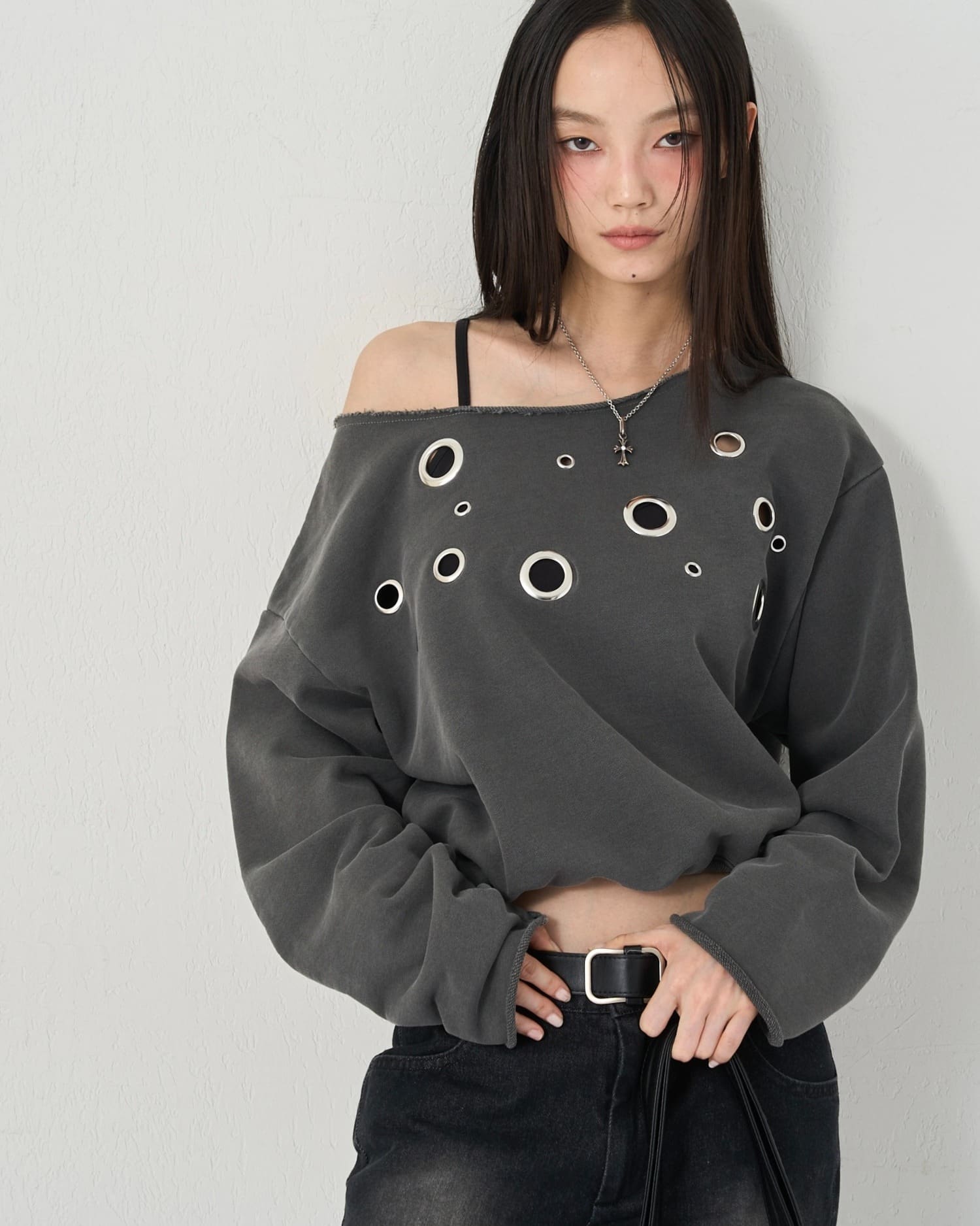 • -FRONT EYELET OFF-SHOULDER SWEATSHIRT-