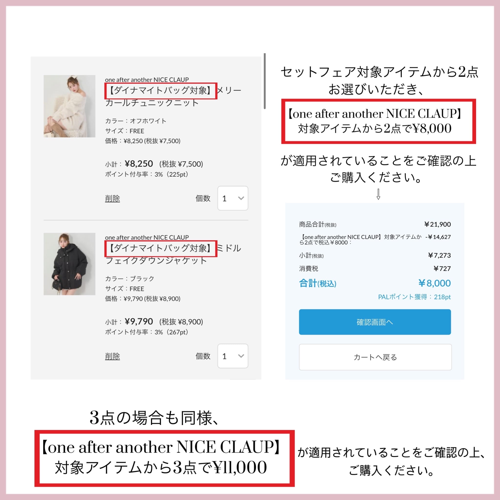 2026.01.26 NEW one after another NICE CLAUP(ワンアフターアナザー ナイスクラップ)【1/26mon 12:00〜】2点税込み¥8,000、3点税込み¥11,000のダイナマイトバッグ 対象アイテムおすすめはこちら ▼ご紹介アイテムはこちら▼ 2026.01.22 NEW one after another NICE CLAUP YouTube更新/今リアルに欲しい春物全部見せ🌸|NICE CLAUP Wishlist 2026.01.22 NEW one after another NICE CLAUP 《冬のパルクロセール》タイムセール開催! 2026.01.19 one after another NICE CLAUP 【通常販売中】2026年Happybag 2026.01.19 one after another NICE CLAUP premiumorder予約特典¥1000OFF 2026.01.15 one after another NICE CLAUP 【新作情報!】1月の販売開始アイテム 2026.01.09 one after another NICE CLAUP 【新作情報!】今週のSHOP販売開始アイテム 2026.01.01 one after another NICE CLAUP 【ついに通常販売スタート】2026年福袋 2025.12.26 one after another NICE CLAUP 【新作情報!】今週のSHOP販売開始アイテム ニュース一覧へ > ニュース一覧へ >