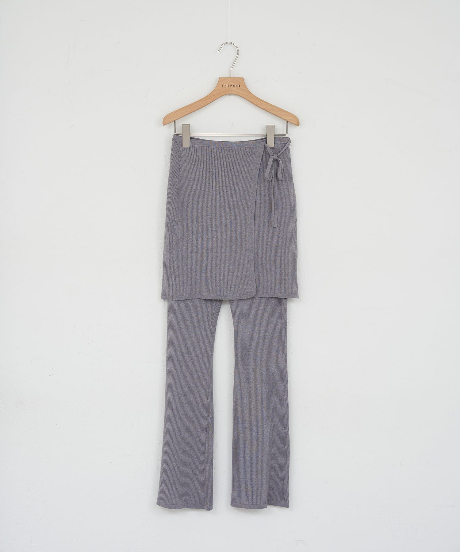 • 02. ニットレイヤードパンツ Black / Gray スカートレイヤードのデザインで、旬な表情に仕上げたニットパンツ。