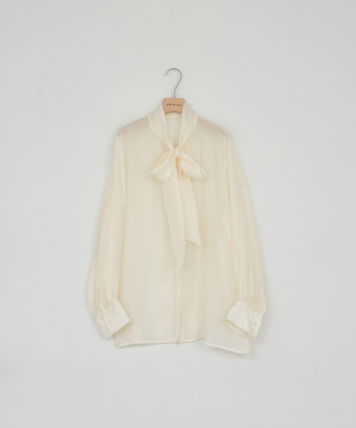• 04. ボウタイブラウス Off white / Black シアー素材の女性らしさと